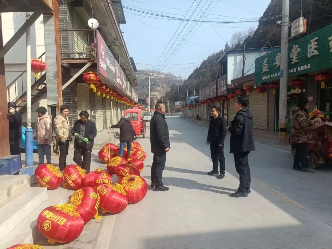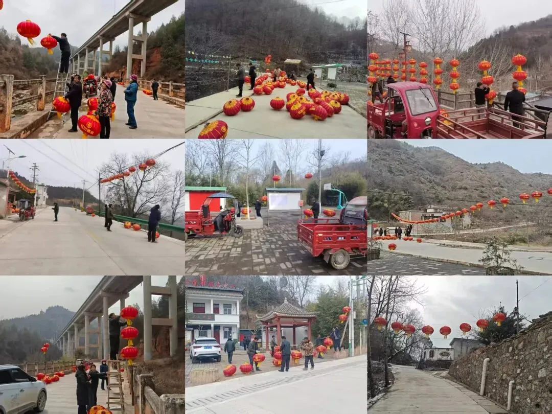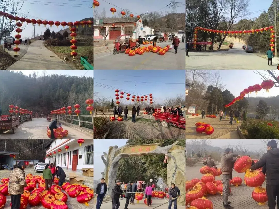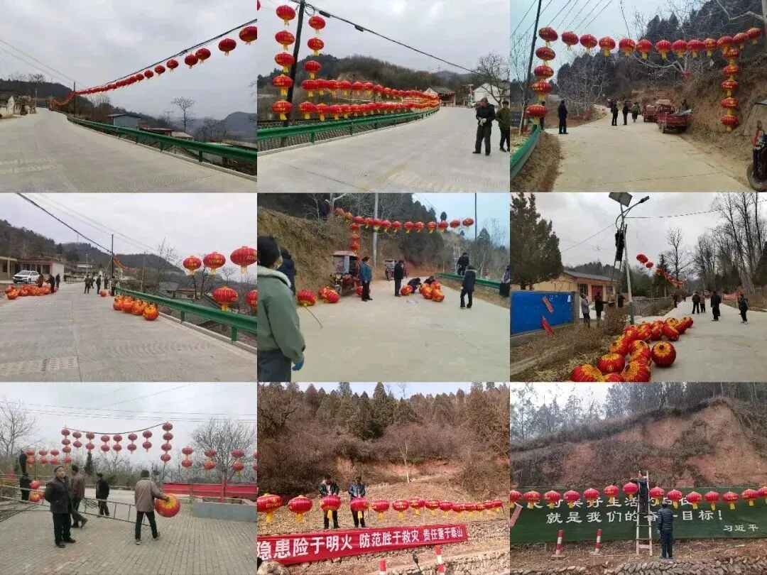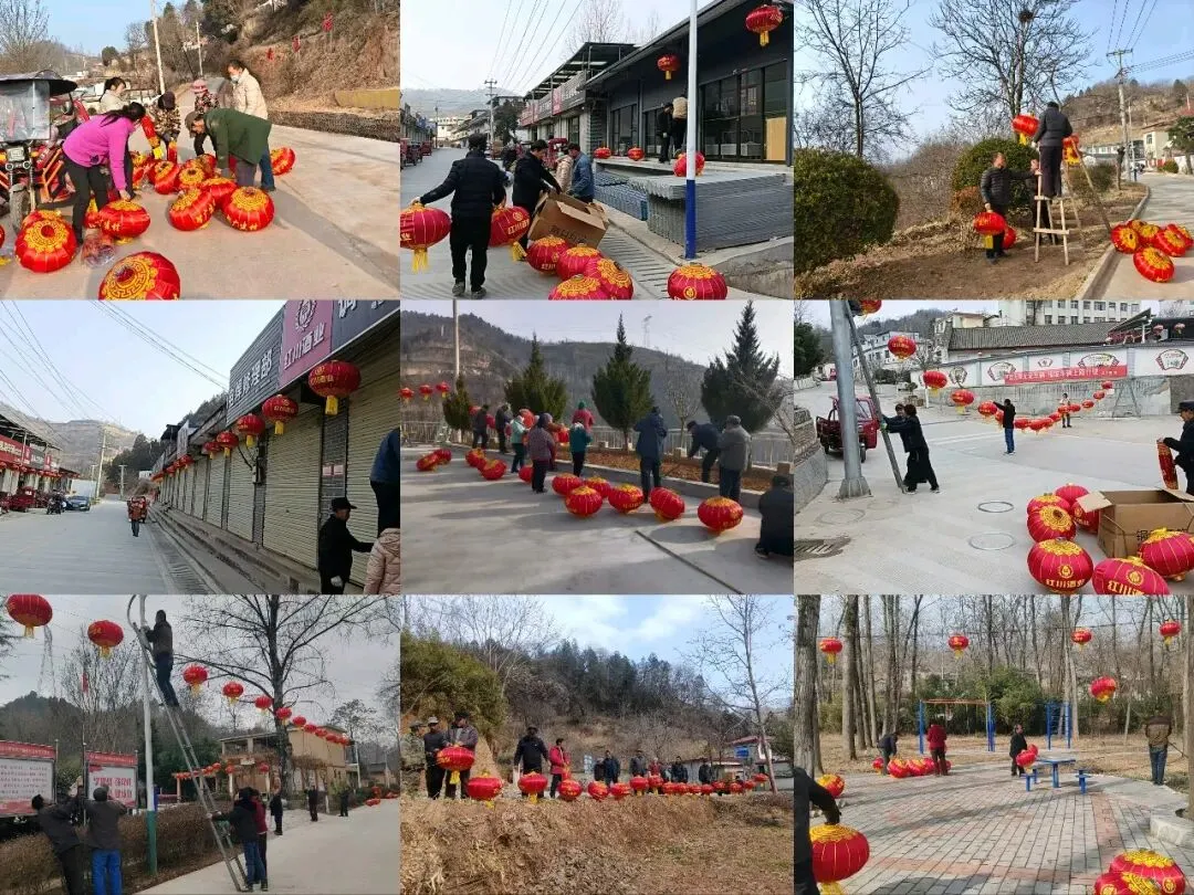 各村组织群众悬挂灯笼营造喜庆祥和的节日氛围。