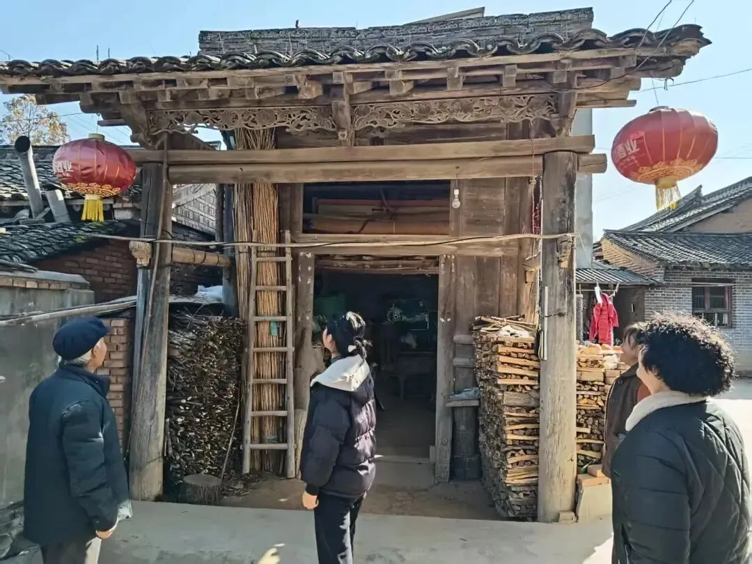 镇村干部开展文物古迹安全隐患排查。