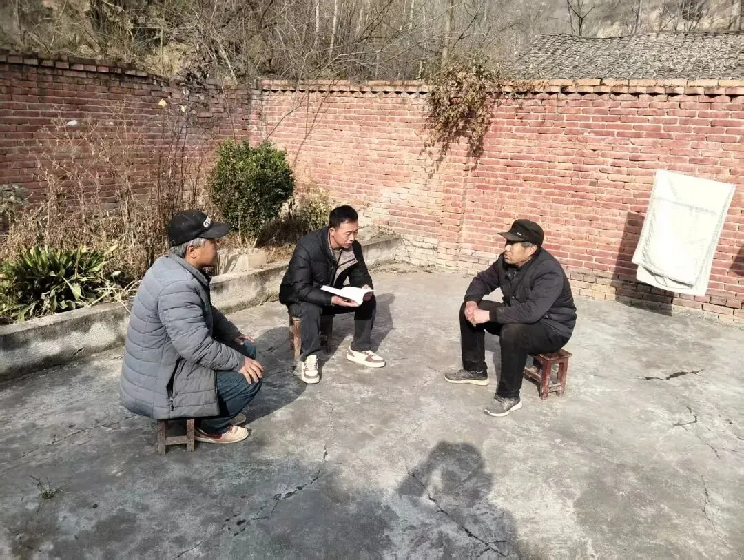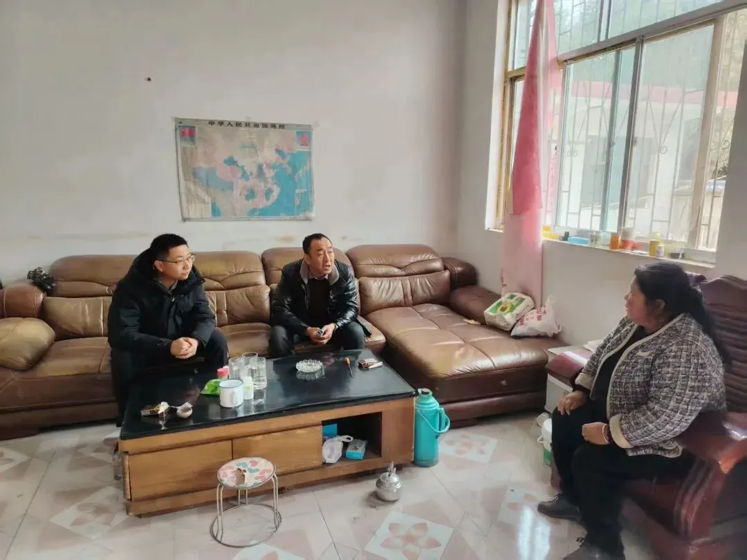 镇村干部入户走访群众,解决群众“急难愁盼”,宣讲惠民政策。