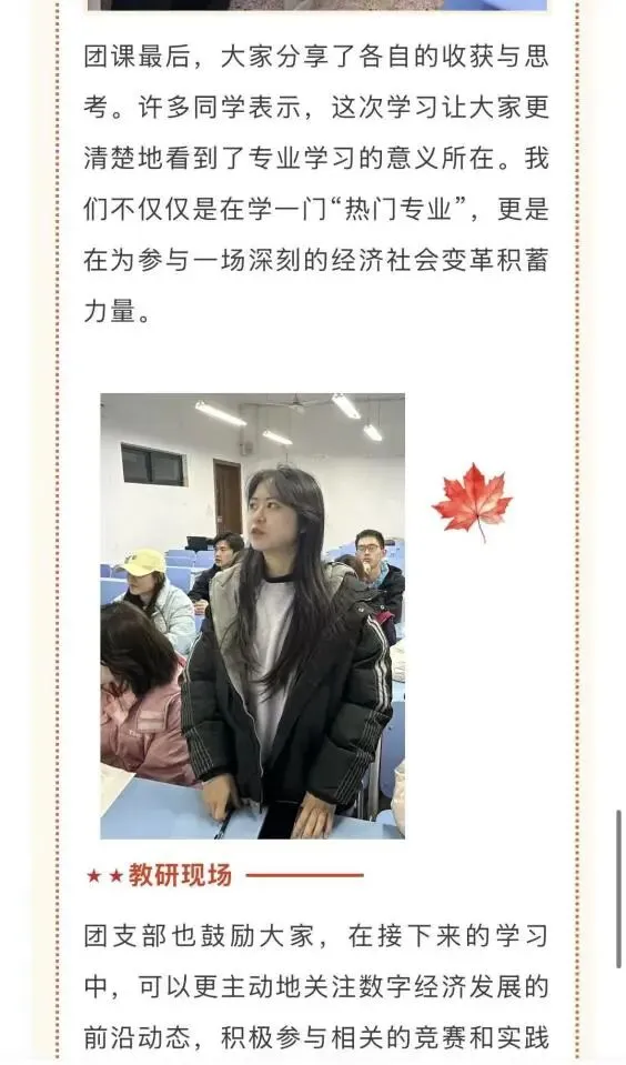 美育工作上,我也没落下。学校和学院办的文艺汇演、书画展、乐器比赛这些活动,我都会主动搜集信息,及时转发给同学们,鼓励有这方面特长的同学大胆报名,给他们一个展示自己的机会。同时,按照学院的要求,我也会帮忙动员大家参加美育普及活动,希望能帮同学们提升一下审美,让课余生活不止有学习和运动,多一份精神上的丰富。
