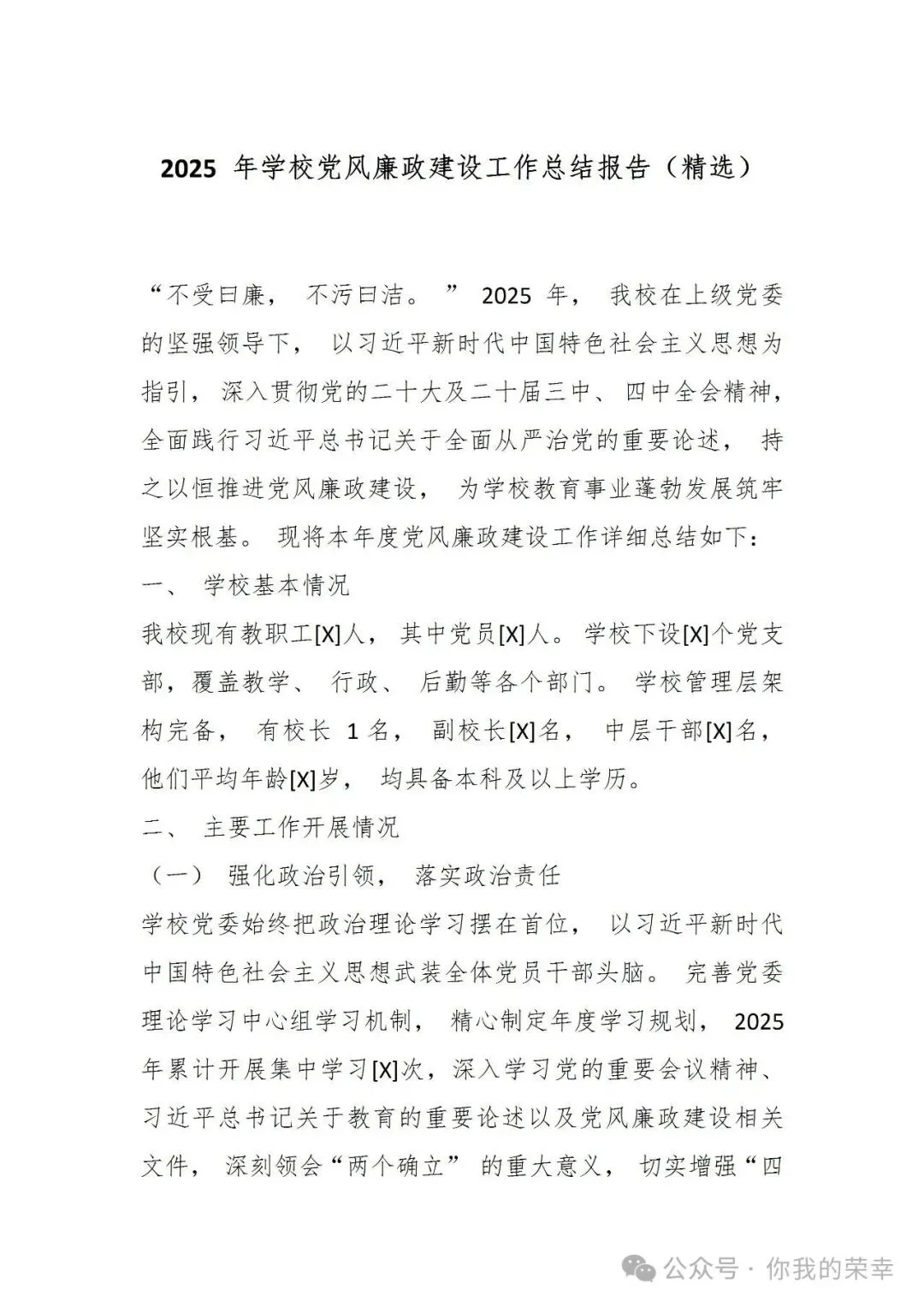 >2025年学校党风廉政建设工作总结报告(精选)word版