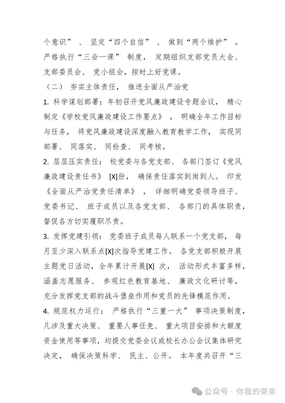 2025 年学校党风廉政建设工作总结报告(精选)word版