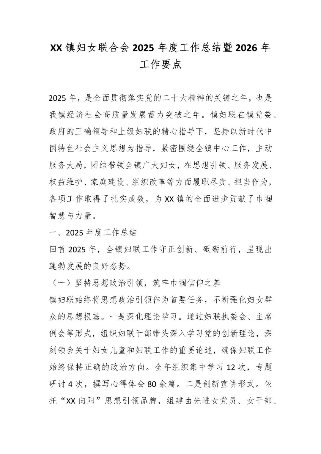 XX镇妇女联合会2025年度工作总结暨2026年工作要点