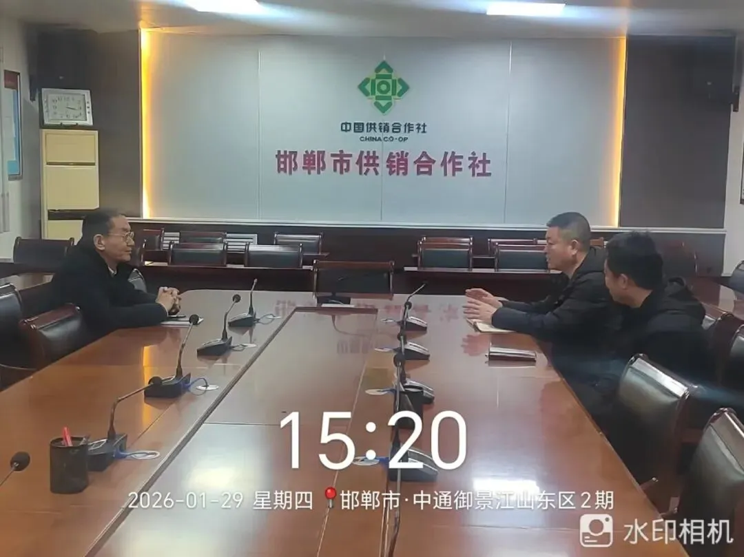 1月27日,县供销社理事会副主任郝杰与河北鲜天下科技有限公司总经理吴伟光就生鲜配送项目进行了深入对接洽谈。