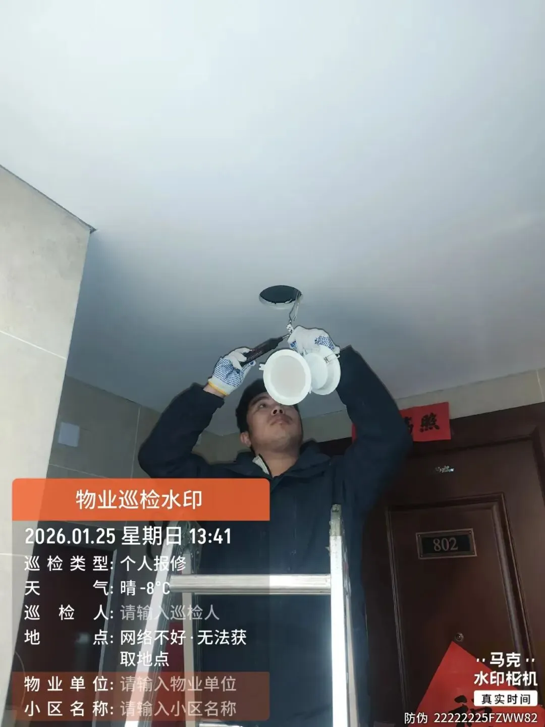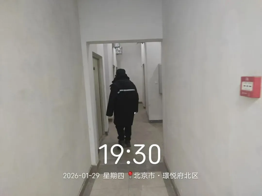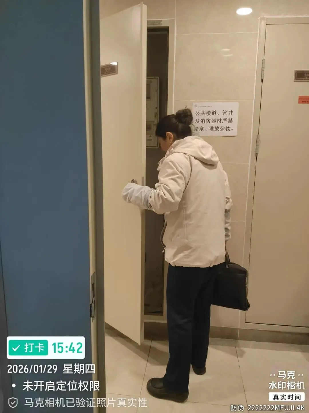 02、管家日常楼宇巡视。查看楼道管井锁具完好、卫生干净整洁度、公区照明以及门窗正常开关等情况。