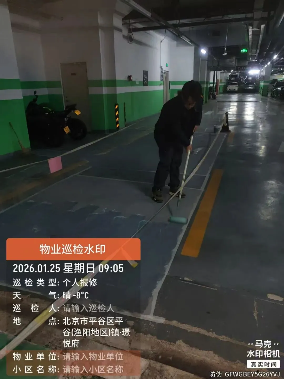02、巡逻岗日常巡视,路线覆盖园区主干道、消防通道、地下车库、儿童游乐场所、充电车棚,发现问题及时汇报处理。