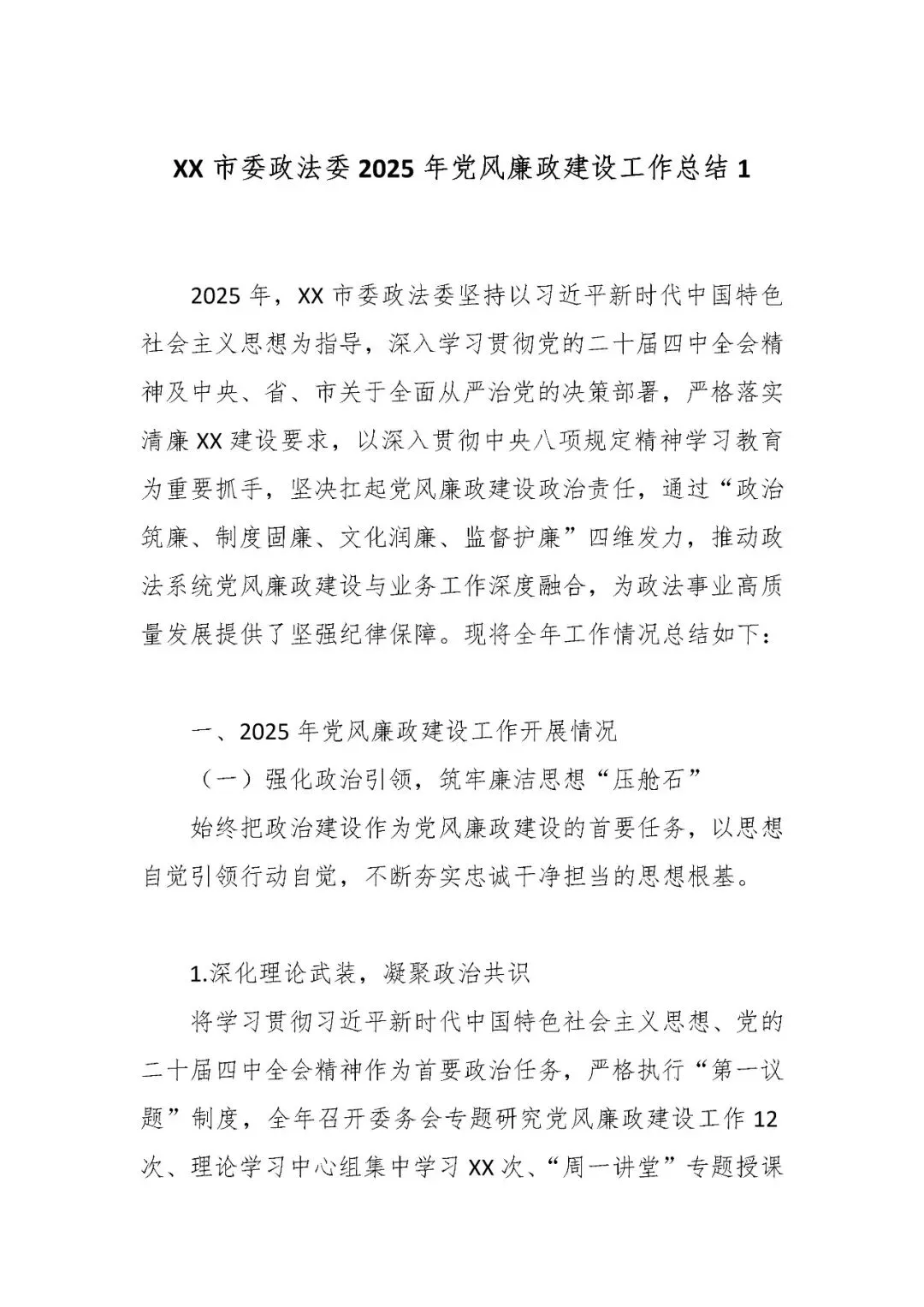 XX市委政法委2025年党风廉政建设工作总结1