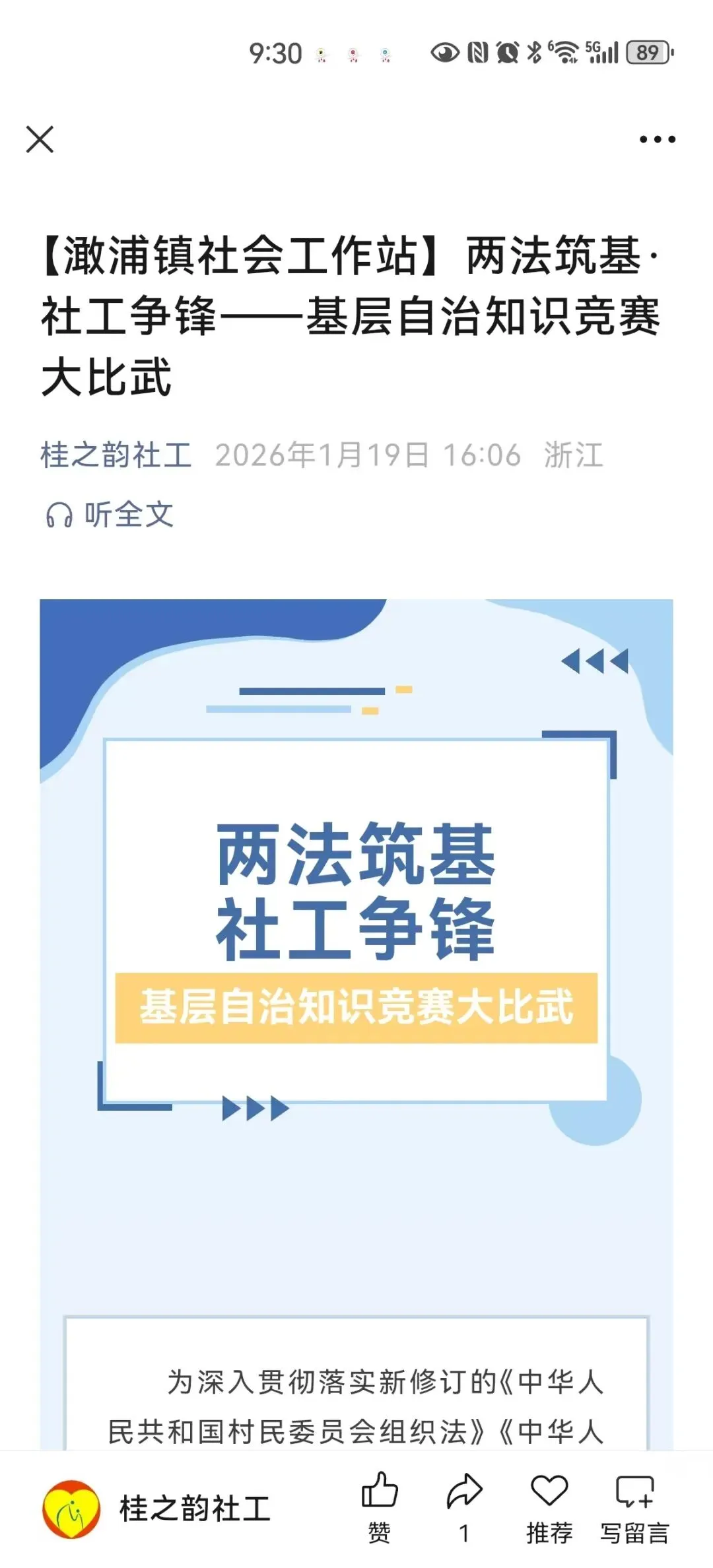 为深入贯彻落实新修订的《中华人民共和国村民委员会组织法》《中华人民共和国城市居民委员会组织法》(以下简称 “两法”),进一步提升全镇村(社区)民政条线负责人的法治素养与履职能力,近日,澉浦镇社会工作站精心组织开展 “两法” 知识竞赛大比武活动,全镇 14 个村(社区)的民政工作骨干齐聚一堂,以赛比学、以赛促干,掀起学法用法热潮。