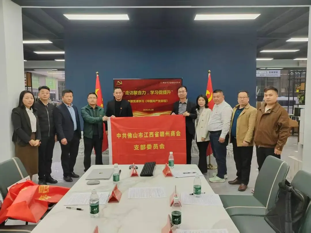 1月8日,佛山市江西省赣州商会党支部来到我会副会长兼执行秘书长李德松公司——佛山华赞建材有限公司开展以“走访聚合力,学习促提升”为主题的党章学习活动!