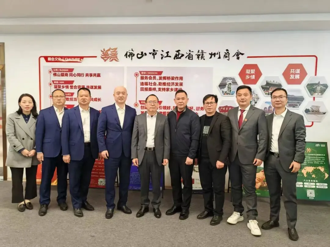 1月28日,我会常务副会长兼秘书长李明旺,副会长兼执行秘书长李德松,副会长邹佳旺、潘忠义,会员朱家红、张燕贵、邱小寒,执行秘书长廖志慧等走进广州百富乐发展有限公司拜访广东省赣州商会庄席福会长。