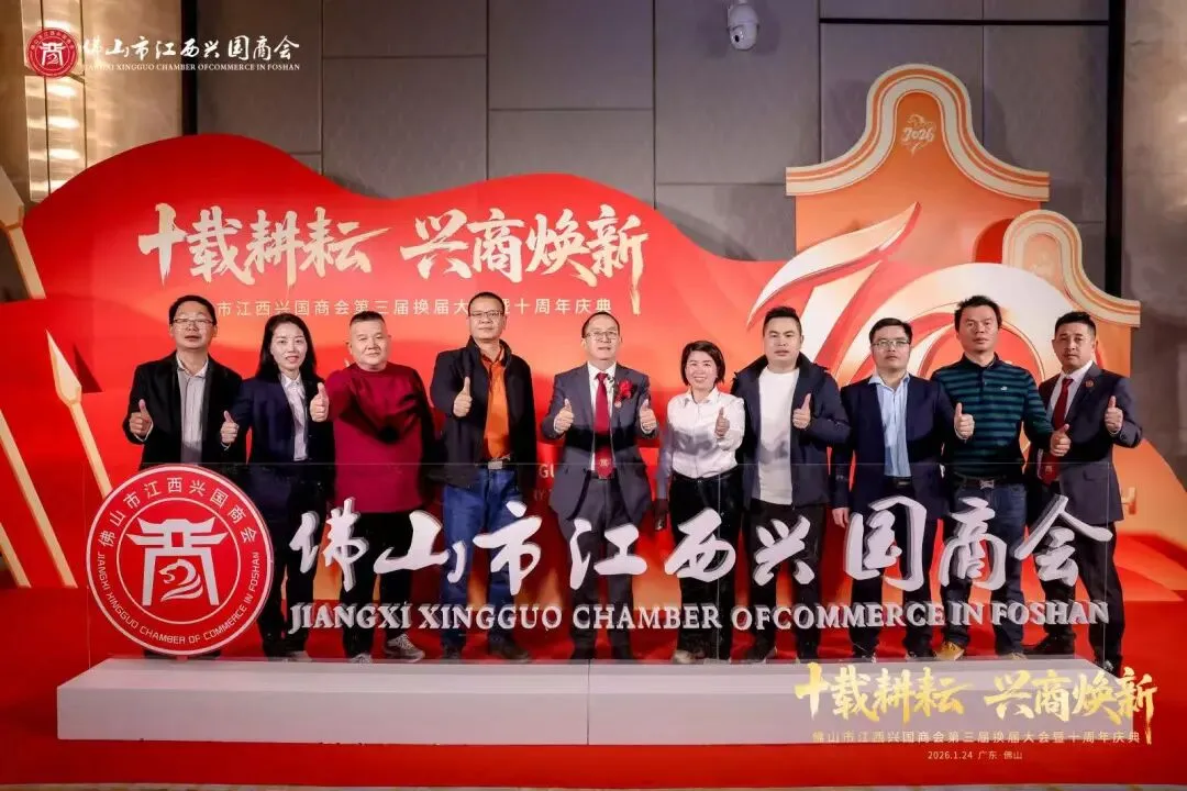 1月24日,佛山市江西兴国商会第三届换届大会暨十周年庆典隆重举行,我会会长陈锦茂带队前往恭贺!