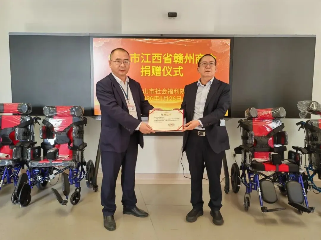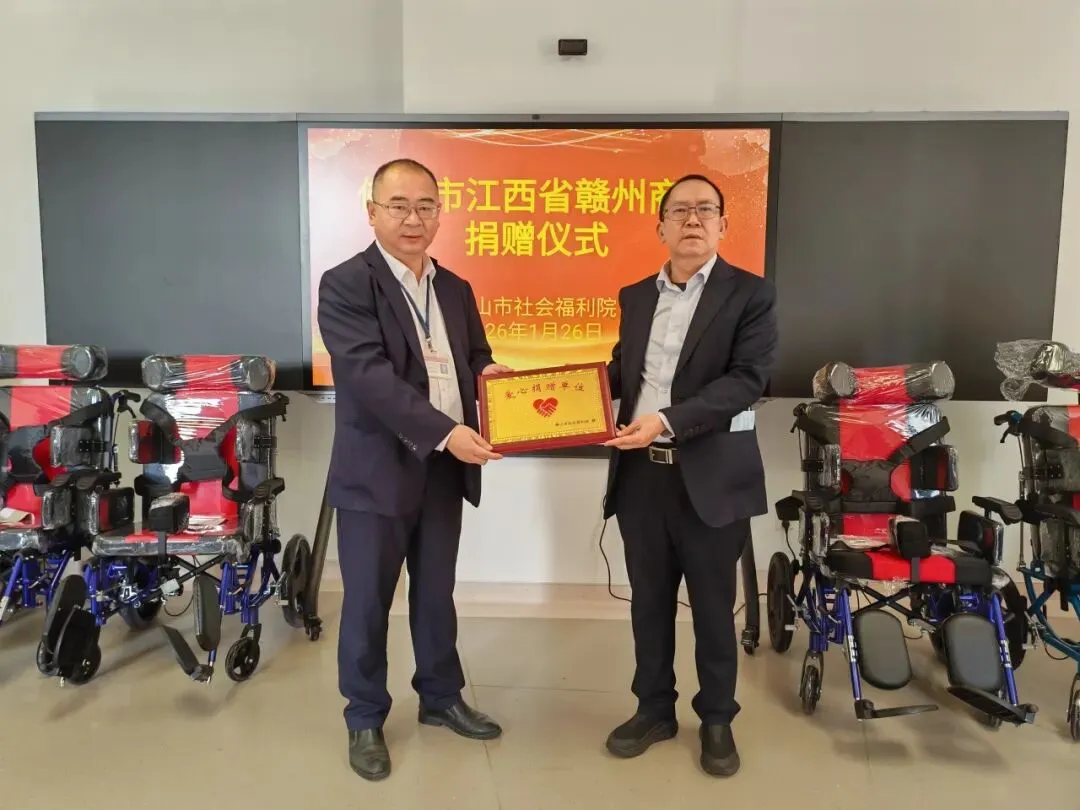 “赣商有情,情暖佛山”,1月26日,佛山赣州商会携手会员走进佛山市社会福利院,开展爱心捐赠活动,送去了轮椅和学习、活动用桌。佛山市社会组织党委专职副书记熊红祥亲临活动现场,共同见证了这份温暖的爱心传递。