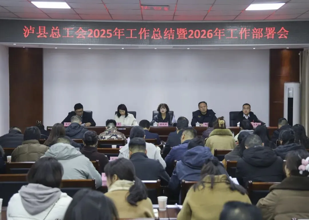 2月2日,泸县总工会召开2025年工作总结暨2026年工作部署会,会议全面总结了2025年工会工作,安排部署了2026年主要任务,玉蟾街道总工会、教育行业工会联合会等5个基层工会作了交流发言。