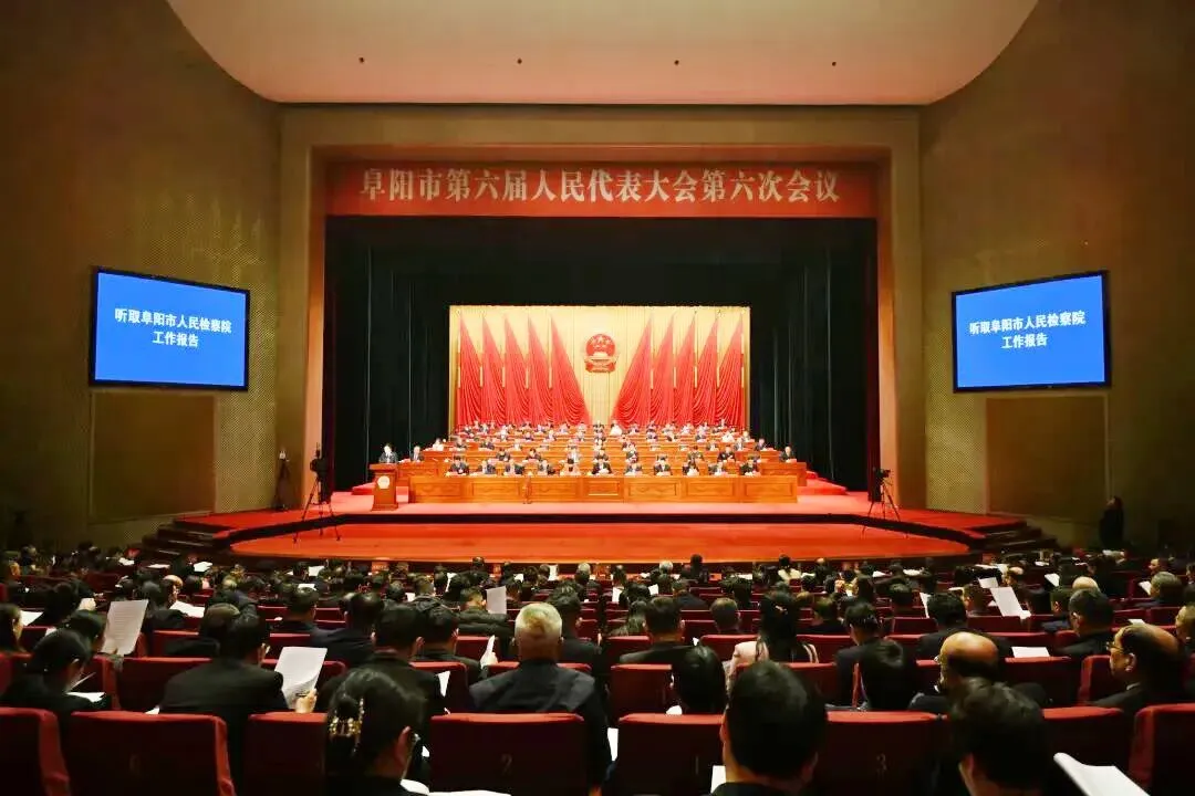 2026年1月30日下午,在阜阳市第六届人民代表大会第六次会议上,阜阳市人民检察院副检察长、检察长候选人褚彦作《阜阳市人民检察院工作报告》。