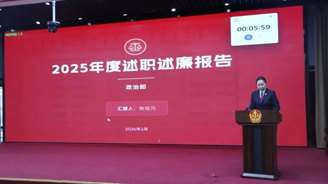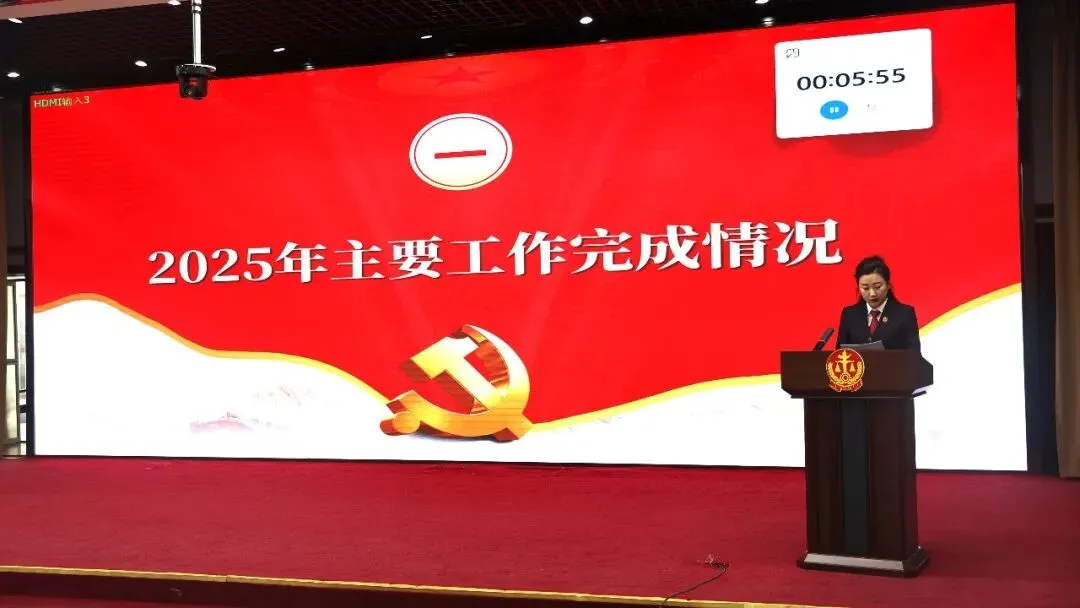 会上,中院机关10个部门现场述职,其余部门书面述职。会议通报表扬了2025年度中院机关先进集体、先进个人、优秀法官、办案标兵、优秀法官助理、优秀书记员、信息宣传标兵,号召全院干警以先进为标杆,锐意进取、实干笃行,营造比学赶超、争先进位的浓厚氛围。