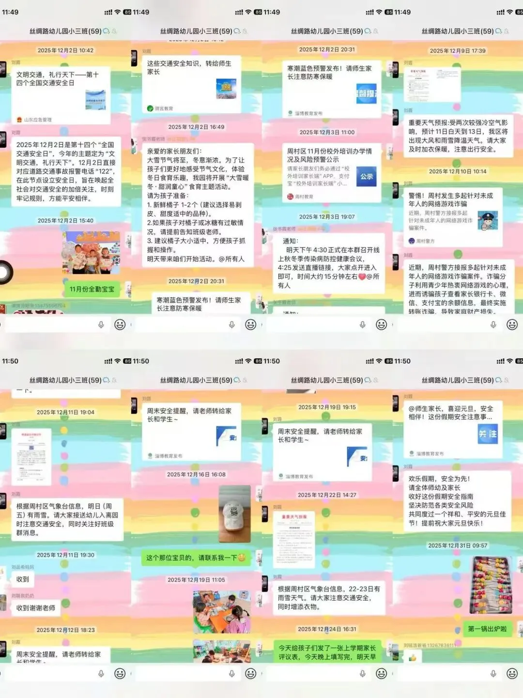 幼儿园安全工作离不开家长的支持与配合。本学期,我园通过公众号、班级微信群等多种渠道,向家长普及校园安全、冬季取暖安全、交通安全、防溺水等知识,引导家长履行监护责任,提升安全监护意识。