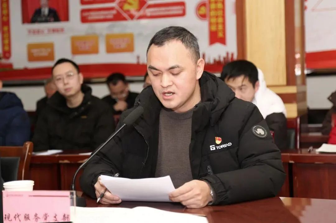 党支部书记述职环节,驻村第一书记和智能制造、数智金融、现代服务党支部书记依次述职。各支部书记结合工作实际,就履行党建第一责任人职责情况、意识形态和党建工作开展情况、存在的问题及改进措施、下步打算等方面作了全面汇报。
