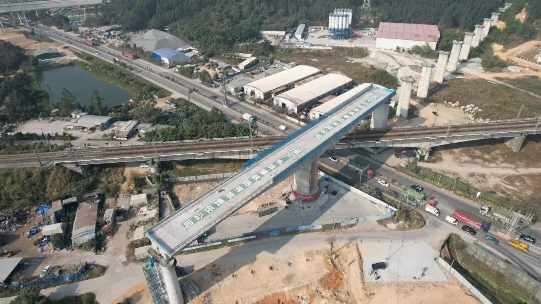 👆珠肇高铁4标居安特大桥T构梁转体成功