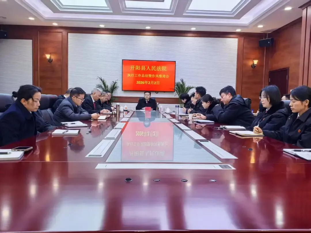 2026年是“十五五”规划的开局之年,为认真贯彻落实上级部署要求,科学谋划布局2026年执行工作,比学赶超、争先进位,2月2日,开阳县人民法院召开执行工作总结暨作风整肃会。党组成员、副院长穆莲主持会议,党组书记、代理院长霍守明,党组成员、政治部主任罗黔龙出席会议并讲话,全体执行局干警参加会议。