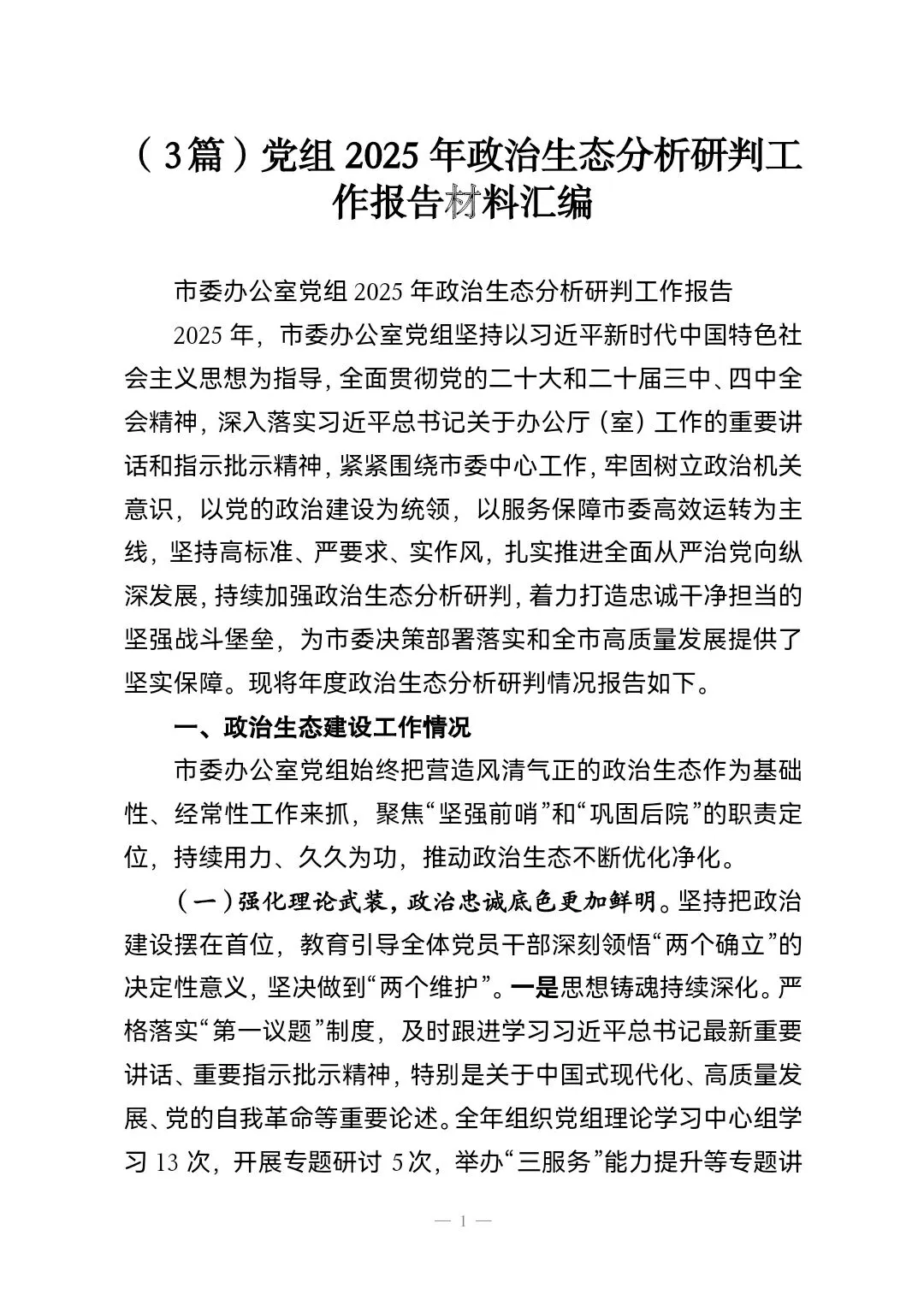 >(3篇)党组2025年政治生态分析研判工作报告材料汇编