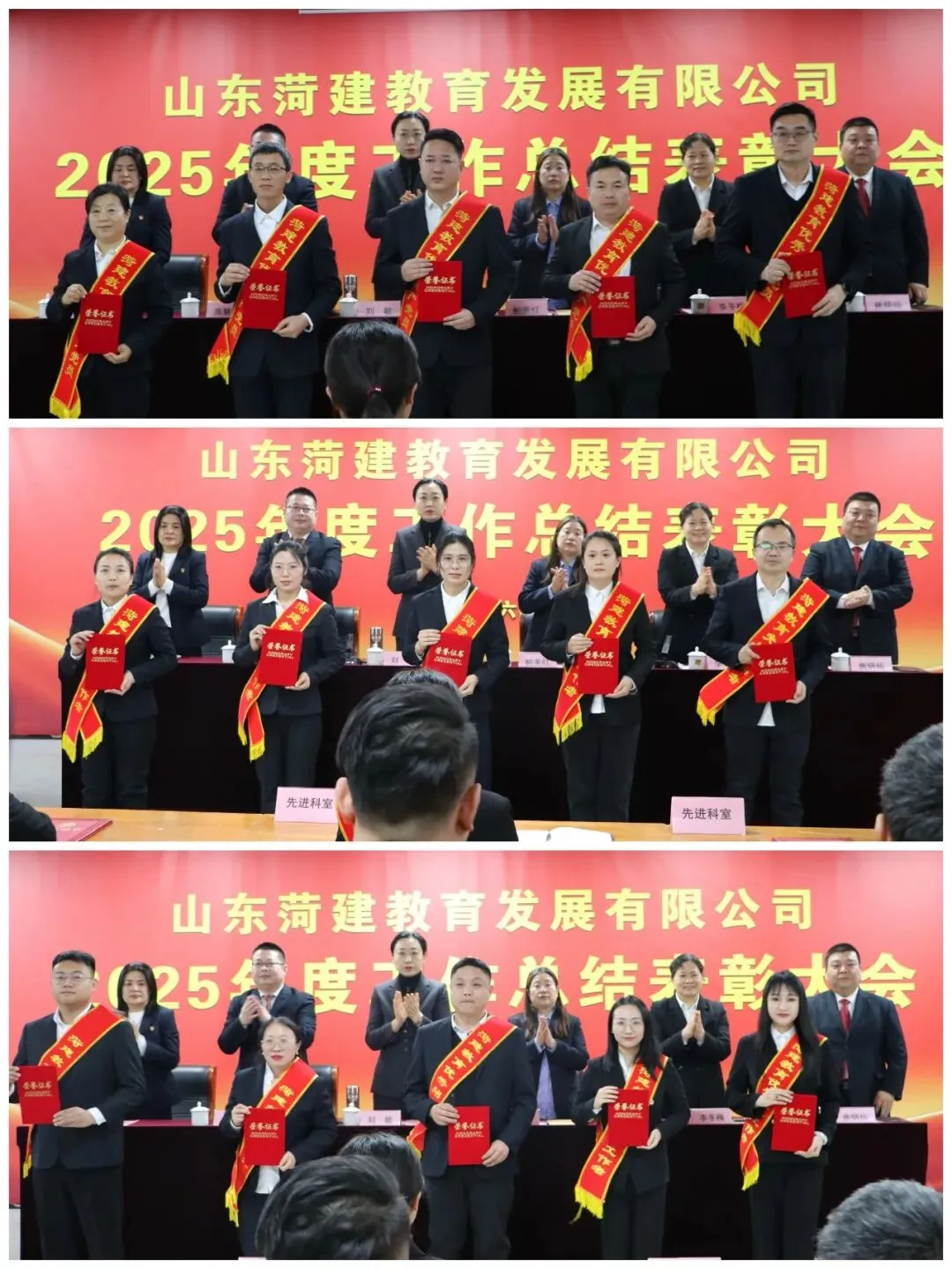 刘敏代表菏建国投,向受到表彰的先进集体和个人表示祝贺,向教育公司全体员工的辛勤付出致以诚挚问候,对教育公司在2025年取得的成绩给予肯定,对教育公司2026年战略发展进行了详细规划。她强调,2026年是教育公司深化改革、提质增效的关键一年,面对新的形势与任务,一是要持续深化内控体系建设,坚守经营管理、安全生产、廉洁自律等关键领域的安全底线;二是要高标准、高质量推进菏建职业教育学校项目建设,科学规划功能布局,全力提升办学条件,逐步扩大自主办学的规模和影响力;三是要进一步强化服务意识,加强人才梯队建设,持续提升办学质量,培育符合市场的新型拳头专业;四是要积极响应国家“一带一路”倡议,坚持“走出去”战略,提升学生的国际视野与跨文化沟通能力;五是要牢固树立“一盘棋”思想,心往一处想、劲往一处使,形成推动公司发展的强大合力,最终实现经济效益与社会效益的双丰收。