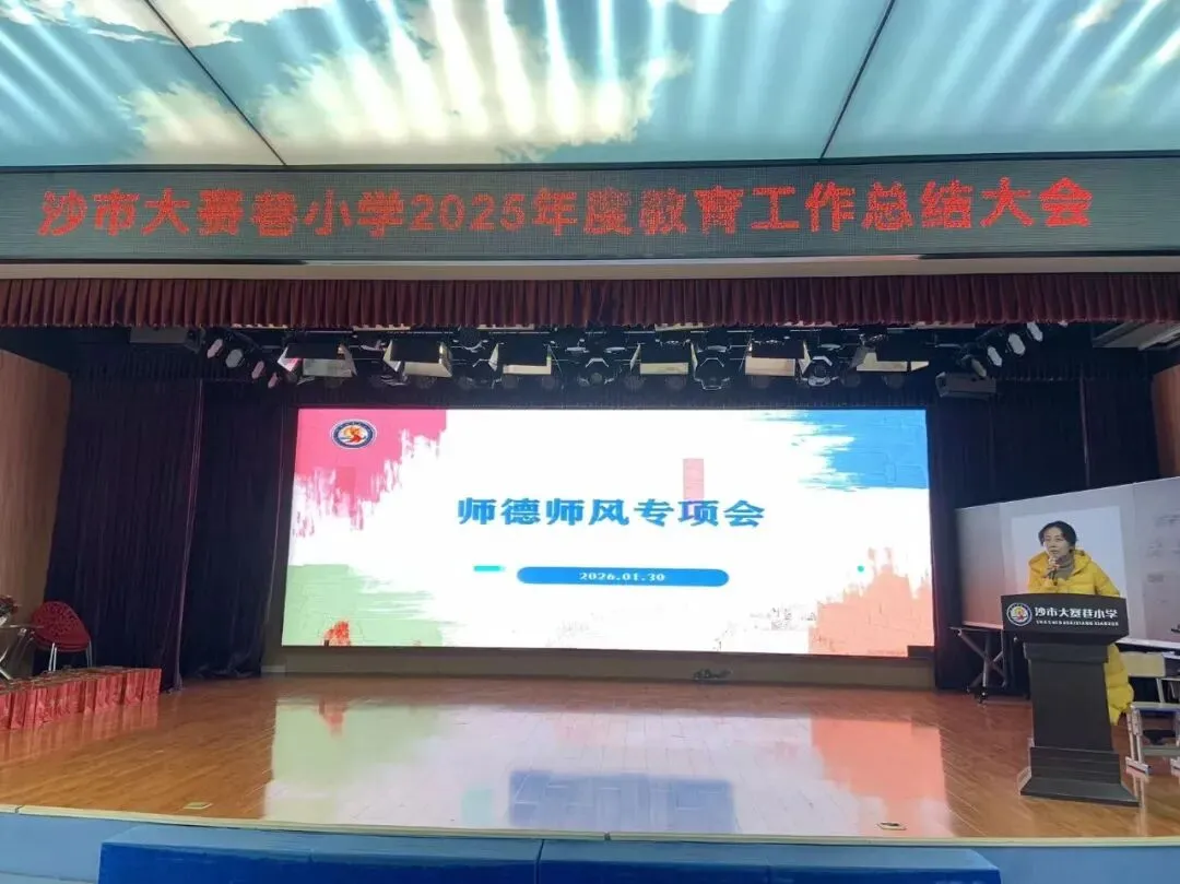 此次年度总结大会,既是对2025年学校各项工作的全面复盘与系统梳理,更是对寒假工作的周密安排和新学期发展的科学谋划。全体教师将以此次大会为契机,认真落实会议各项要求,利用寒假扎实开展业务学习与备课筹备,严守师德师风纪律,以更加饱满的热情、更加务实的作风、更加有力的举措,投入到新学期的教育教学工作中,为沙市大赛巷小学教育事业的持续发展贡献新的力量。