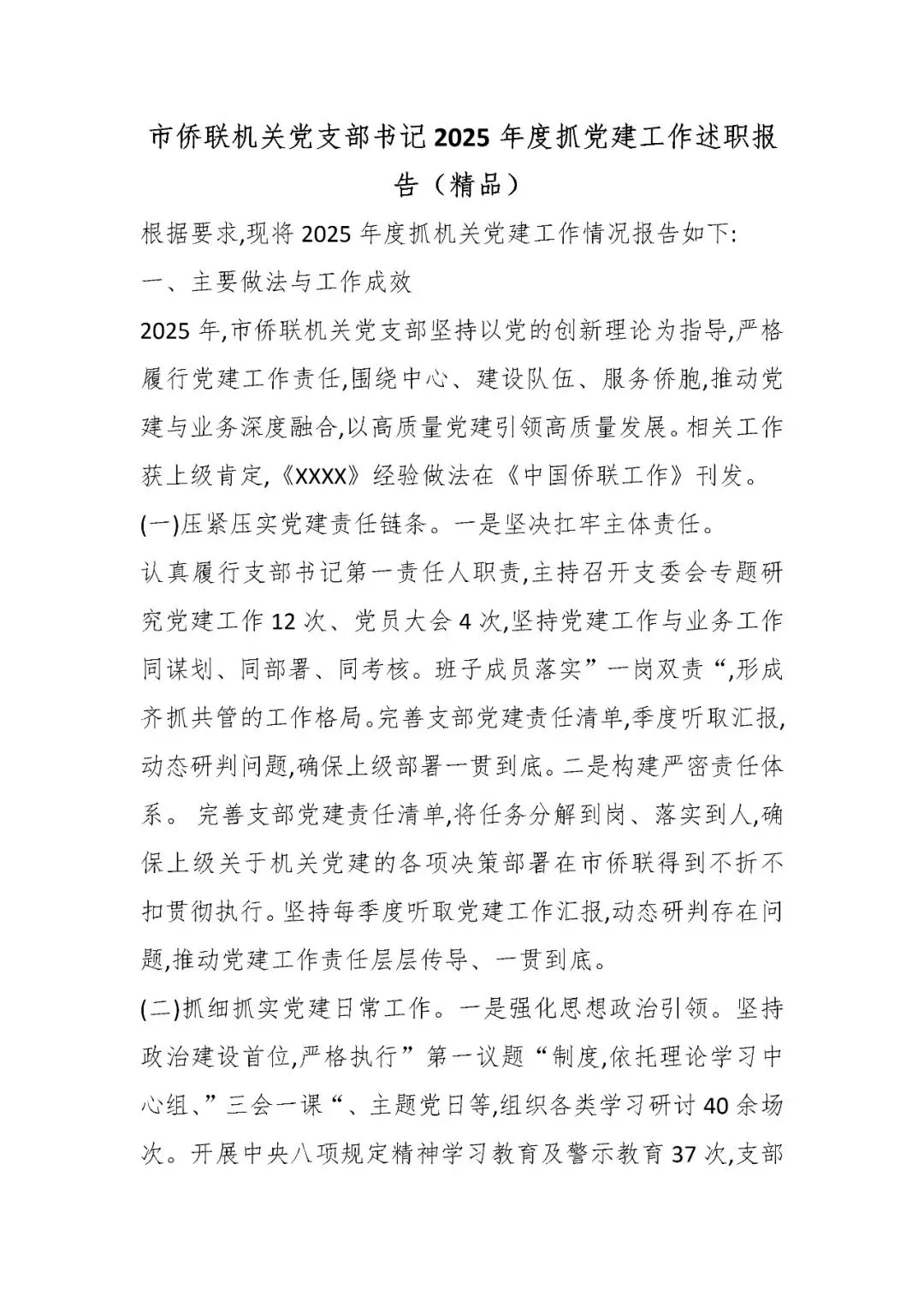 市侨联机关党支部书记2025年度抓党建工作述职报告(精品)