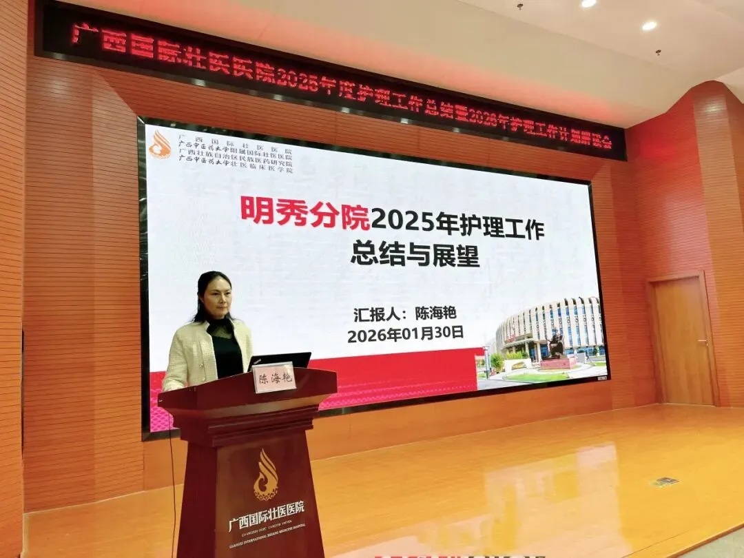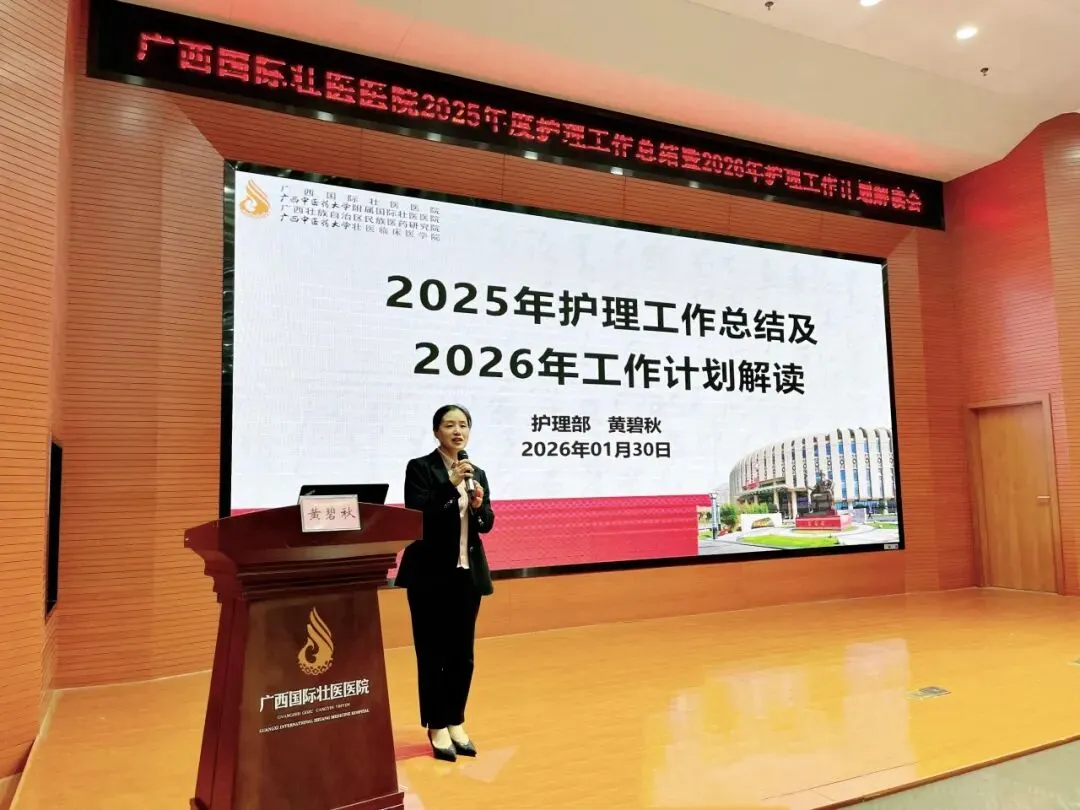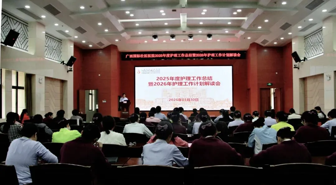 为全面梳理2025年护理工作,谋划部署2026年工作重点,进一步夯实护理质量根基、深化壮医护理特色内涵,1月30日,护理部召开2025年度护理工作总结及2026年护理工作计划解读会。全体护士长、护理临时负责人及护理骨干代表百余人参会。