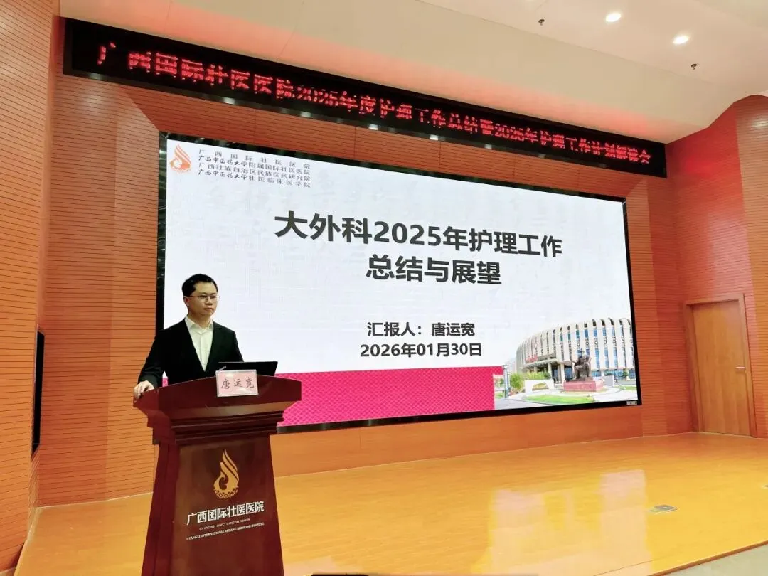 会议总结2025年工作成效。在队伍建设方面,培养专科护士及护理传承骨干24人,21人获医疗护理员培训师资证书;在标准建设方面,主导发布团体标准2项,参与发布团体标准3项;在特色服务方面,建成壮医特色护理门诊及壮医沙疗馆,并有序开展“无陪护”病房试点工作,培养医疗护理员132名;在新技术方面,引进5项护理新技术并应用于临床,推动护理服务持续提质增效。