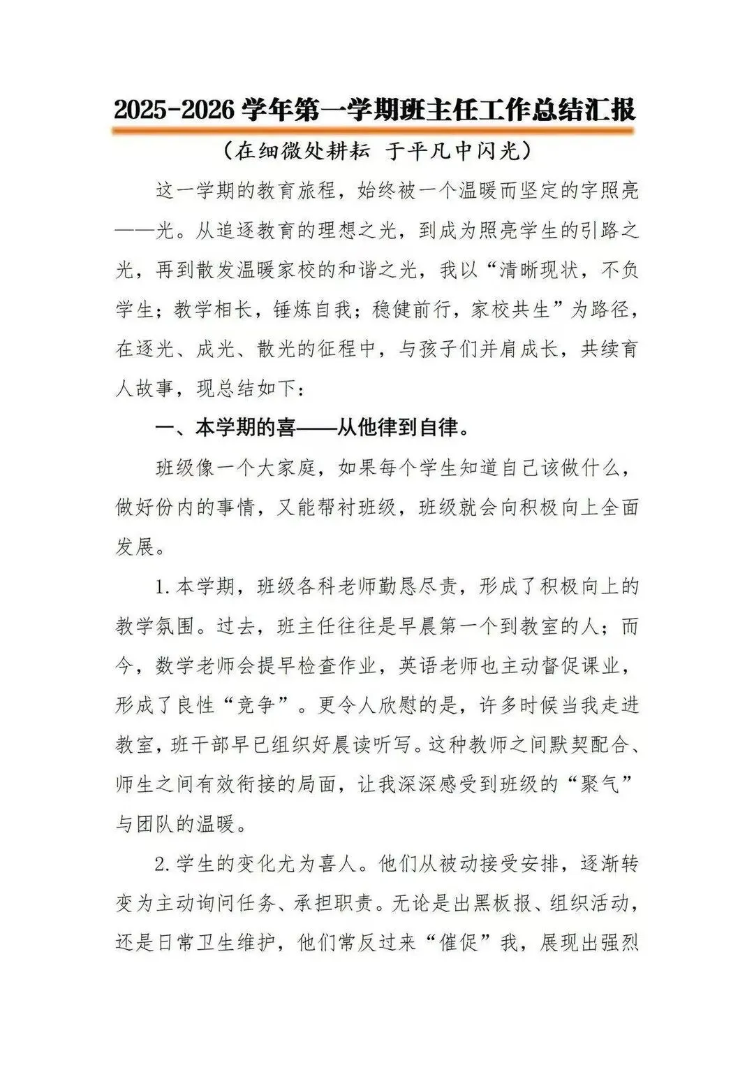 >2025-2026第一学期班主任工作总结报告