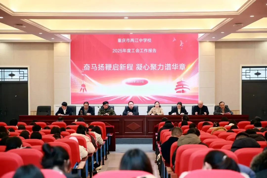 时序更替,华章日新;凝心聚力,共启新篇。为全面复盘本学期工作成效,系统部署假期及后续重点工作,2026年1月31日15:00,重庆市两江中学校2025-2026学年度第一学期工作总结会议在学术报告厅隆重召开,全校教职工齐聚一堂,回顾耕耘足迹,明确前行方向。会议由党委副书记刘树云主持。