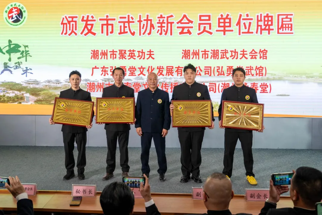 2026年1月31日,潮州市武术协会“迎新春”暨2025年度工作总结大会在热烈且庄重的氛围中隆重举行。本次大会不仅是对过去一年协会工作进行全面、系统的总结,更是一场汇聚武术精粹、大力弘扬中华优秀传统文化的盛会,为即将来临的新春佳节增添了浓郁醇厚的文化气息。 大会在庄严激昂的国歌声中正式拉开帷幕,全体与会人员庄严肃立、高唱国歌,爱国情怀与武术精神在这一时刻实现交融升华。 随后,武协党支部书记、会长黄林周发表了热情洋溢且富有指导性的开幕辞。他与全体人员共同回顾了协会在2025年度所取得的丰硕成果,对全体会员的辛勤耕耘和社会各界的大力支持表示衷心的感谢,并对协会未来的发展提出了殷切且明确的期望,鼓励大家持续传承和弘扬中华武术文化,为潮州武术事业的繁荣昌盛贡献积极力量。 紧接着,武协常务副会长、秘书长郑伟雄代表协会作工作总结报告。报告全面、深入地梳理了2025年度协会在组织建设、赛事活动、文化交流、武术推广等方面的工作内容与显著成效,既充分肯定了取得的成绩,也客观指出了存在的不足,并明确了新一年的工作方向和重点任务,为协会的持续稳健发展奠定了坚实基础。 办公室主任陈浩伟随后汇报了年度财务收支情况,详细、清晰地公开了各项经费的使用情况,确保了财务工作的透明化、规范化,赢得了会员们的一致肯定与认可。 在大家满怀期待中,会员单位的拳术、器械及现代搏击表演环节精彩呈现。各参演单位精神饱满、技艺高超,传统拳术刚劲雄浑、身法灵动,现代搏击则展现出迅猛凌厉的攻防转换与强大爆发力,拳腿交错间尽显竞技魅力;器械表演更是虎虎生风、气势磅礴。无论是传统的南拳、太极拳、咏春拳,还是现代搏击的精准击打与灵活闪躲,亦或是刀枪剑棍等器械演练,都充分展现出传统武术的深厚历史底蕴与现代搏击的激情活力,刚柔并济、动静相宜,博得了现场观众阵阵热烈的掌声与喝彩,将大会气氛推向了高潮。 潮州武协为进一步做大做强武术交流平台,新吸纳华泰搏击俱乐部、湘桥区韩文实验学校、咏春堂文化传播有限公司(潮州咏春堂)、聚英功夫、潮武功夫会馆及弘勇堂文化发展有限公司(弘勇堂武馆)六家单位为会员单位,为协会注入了新鲜活力与血液,共同构筑潮州武术文化传承与发展新平台,推动武术运动在教育、竞技、文化传播等领域实现深度发展。常务副会长、秘书长郑伟雄为未授牌的四家单位授予会员单位牌匾: 为表彰先进、树立榜样,大会对在第二十三届国际潮团联谊年会中积极主动参演的单位进行了表彰,武协班子成员为他们颁发了“优秀表演奖”牌匾,以感谢他们为传播潮州武术文化、展现潮州武术风采所作出的积极贡献。
