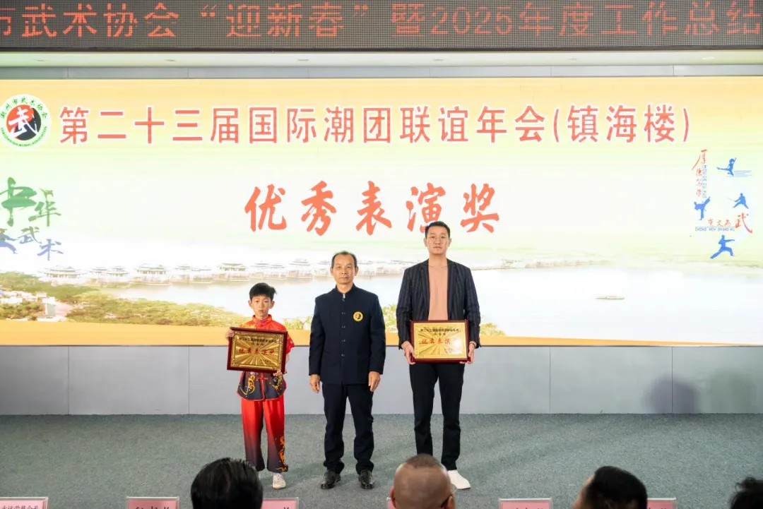 最后,大会还为本次“迎新春”活动中的参演单位颁发了“优秀表演奖”牌匾,激励大家在未来的武术征程上再创辉煌佳绩。