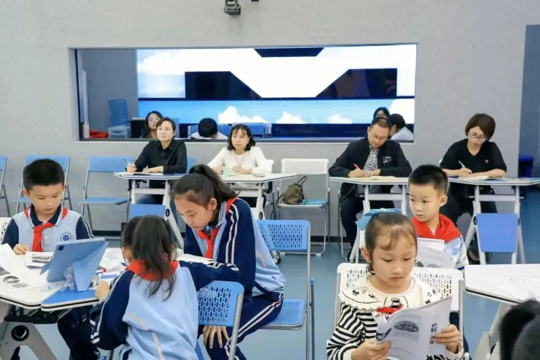 创新思政课堂,厚植家国情怀。党总支书记袁红柳担任五年级(1)班道德与法治教学工作,她积极创新道法课堂形式,精心创设 “时政分享台”。课堂上,同学们化身 “小小新闻播报员”,自信登台分享社会热点、解读时事要闻,让三尺讲台成为涵养学生核心素养的生动阵地。这一创新形式为道法课堂注入鲜活的时代表达,让道法融时政、思政润童心的教学目标落地生花。