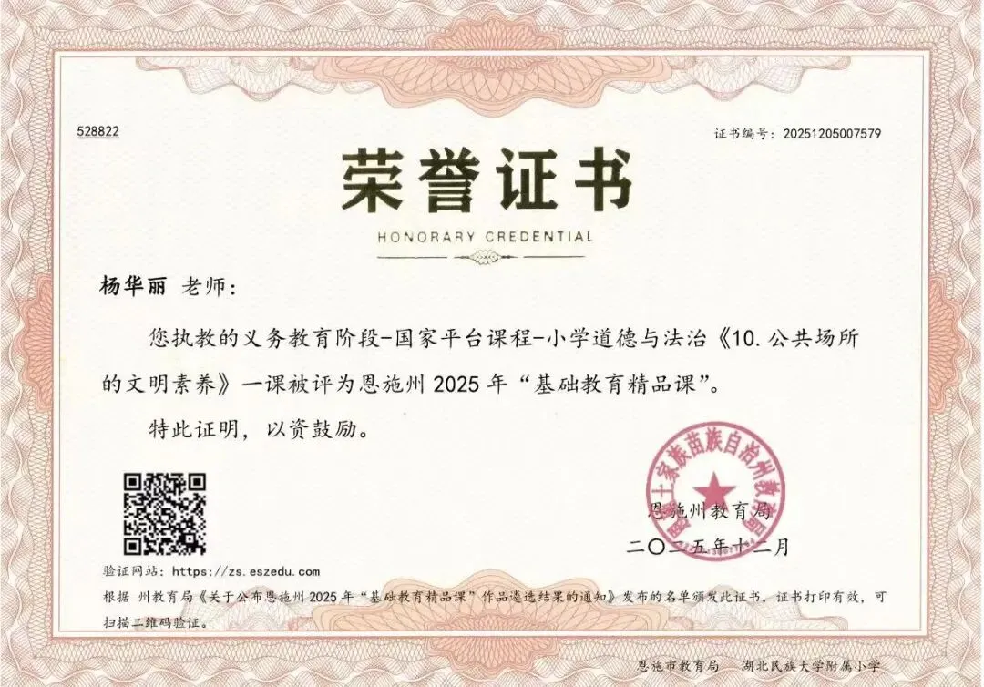 本学期,学校积极组织教师团队参加省州市各级教学竞赛。费华梅老师在“恩施好课堂”活动中,以课例《生活离不开他们》获得一等奖;谭敏老师在“恩施州大中小幼‘思政金课’教学展示活动”中获评州级思政金课;杨华丽老师在“基础教育精品课”评选中,凭借课例《公共场所的文明素养》荣获州级精品课。同时,教研组廖双锋老师参与“五轮教研”邀请课。教师们以同研共思深耕课堂,凝力聚智推动教学行稳致远,充分彰显了我校思政育人工作的扎实根基与持续活力。