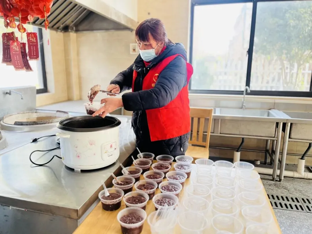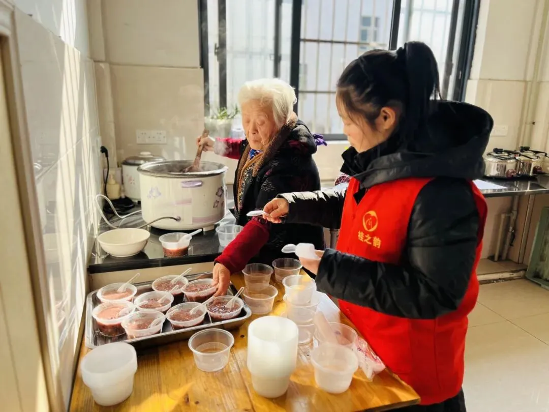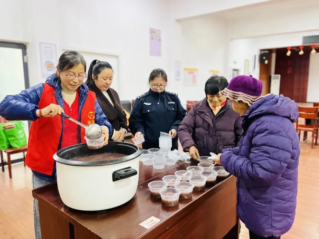 (4)在腊八节来临之际,于城镇八字村联合海盐县桂之韵社工事务所温馨开展“一碗腊八粥,岁岁暖无忧”腊八节主题活动。工作人员精心熬煮腊八粥,为辖区内的老年朋友们送上冬日里的暖心关怀,同时还贴心准备了新年日历,让老人们提前感受新春的喜庆氛围。