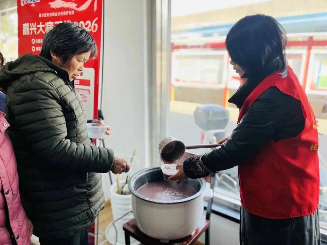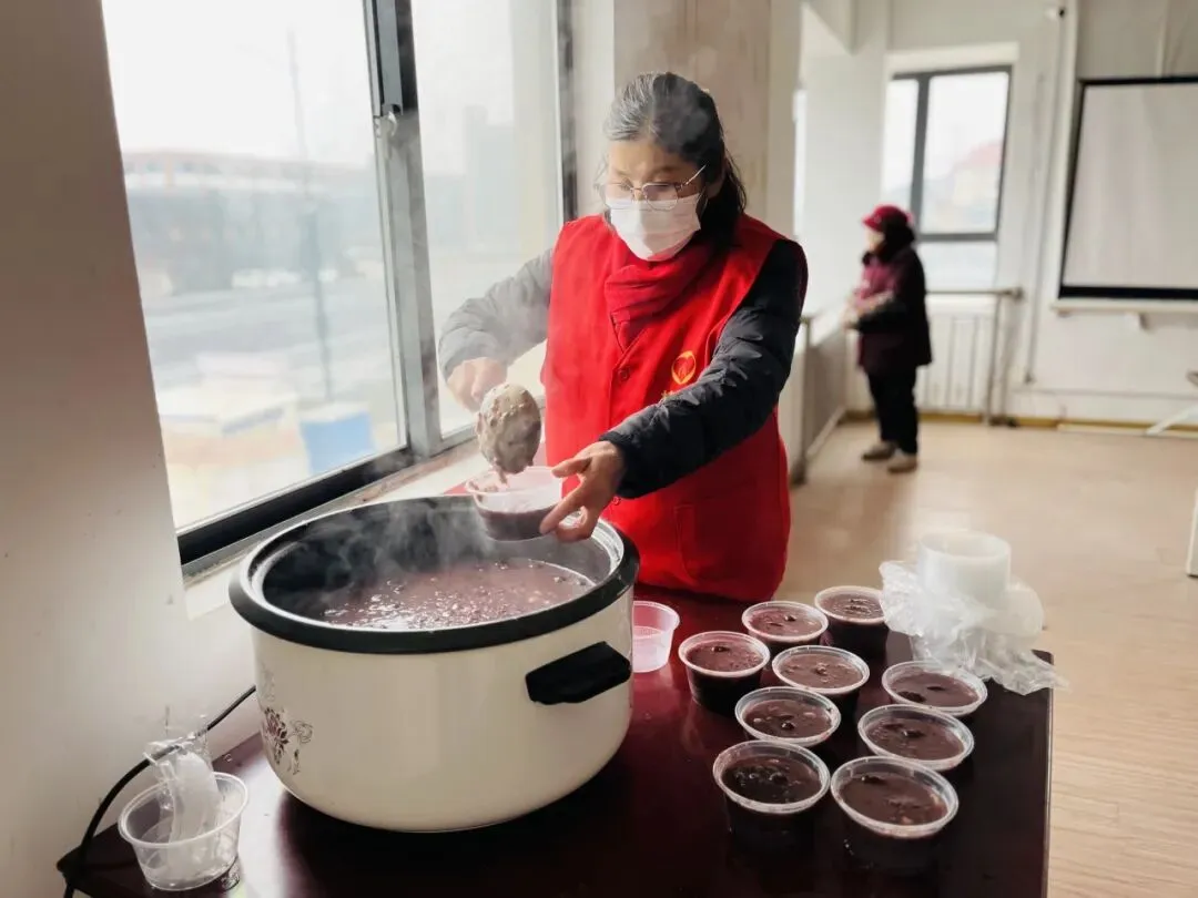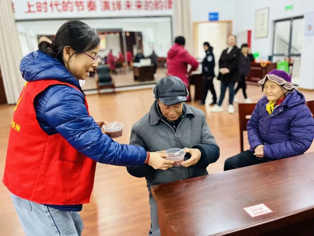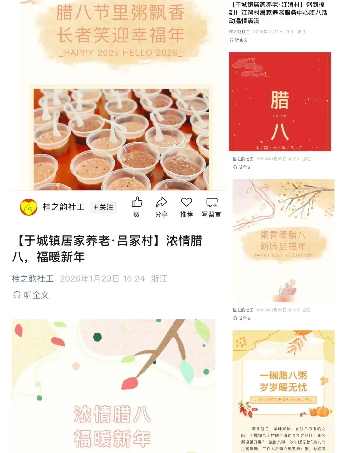 (4)在腊八节来临之际,于城镇八字村联合海盐县桂之韵社工事务所温馨开展“一碗腊八粥,岁岁暖无忧”腊八节主题活动。工作人员精心熬煮腊八粥,为辖区内的老年朋友们送上冬日里的暖心关怀,同时还贴心准备了新年日历,让老人们提前感受新春的喜庆氛围。