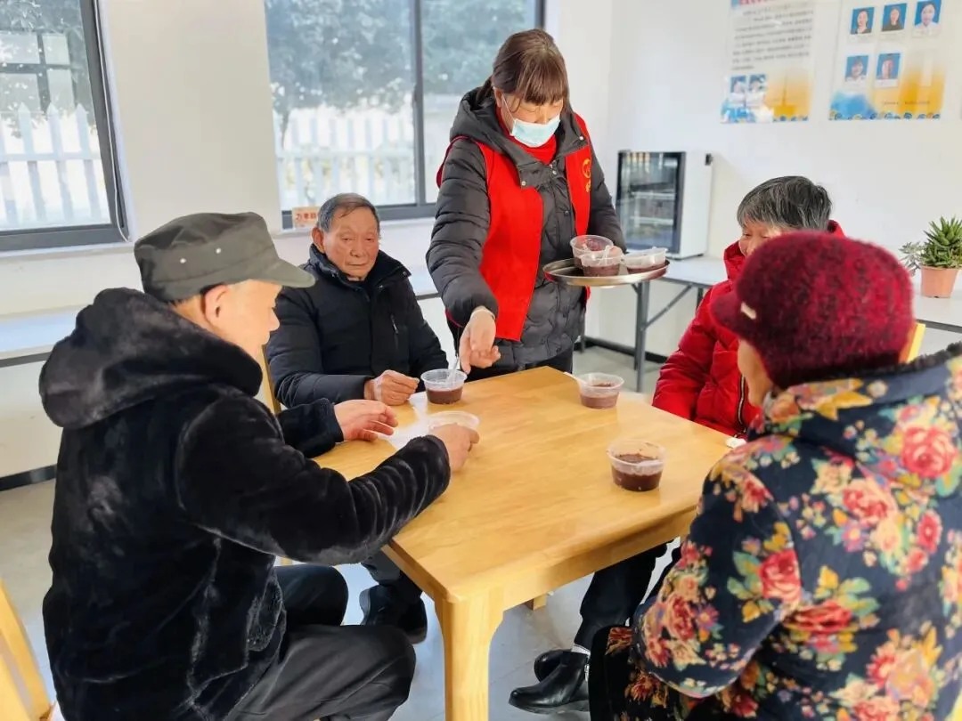 (3)为传承中华传统节日文化,给辖区内的老年朋友们送上冬日关怀,于城镇江渭村联合海盐县桂之韵社工事务所开展了“粥到福到”腊八主题活动,一碗碗香甜软糯的腊八粥,一张张崭新的新年日历,让老人们在温馨的氛围中提前感受到了新年的喜悦。
