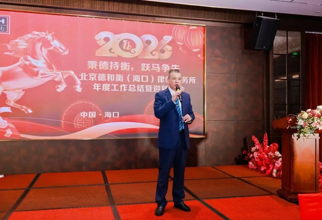 2026 年 2 月 2 日,以“秉德持衡,跃马争先”为主题的年度工作总结、颁奖及迎新晚会于金龙路港顶鲜壹号公馆一楼龙凤厅隆重举行。全体律师、家属代表及客户嘉宾齐聚一堂,一同回顾过去一年的奋斗历程,表彰先进个人与集体,共同探讨未来发展蓝图。