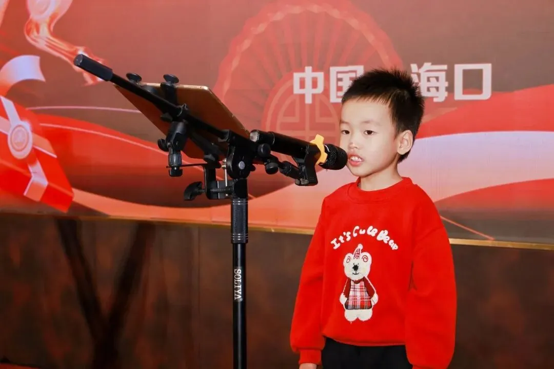- 家属代表尹彦博呈现儿童歌舞《成语拜新年》,童趣盎然,将气氛推向高潮。
