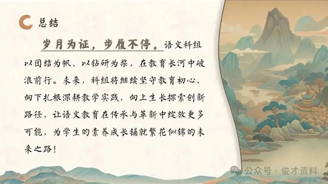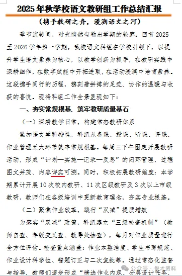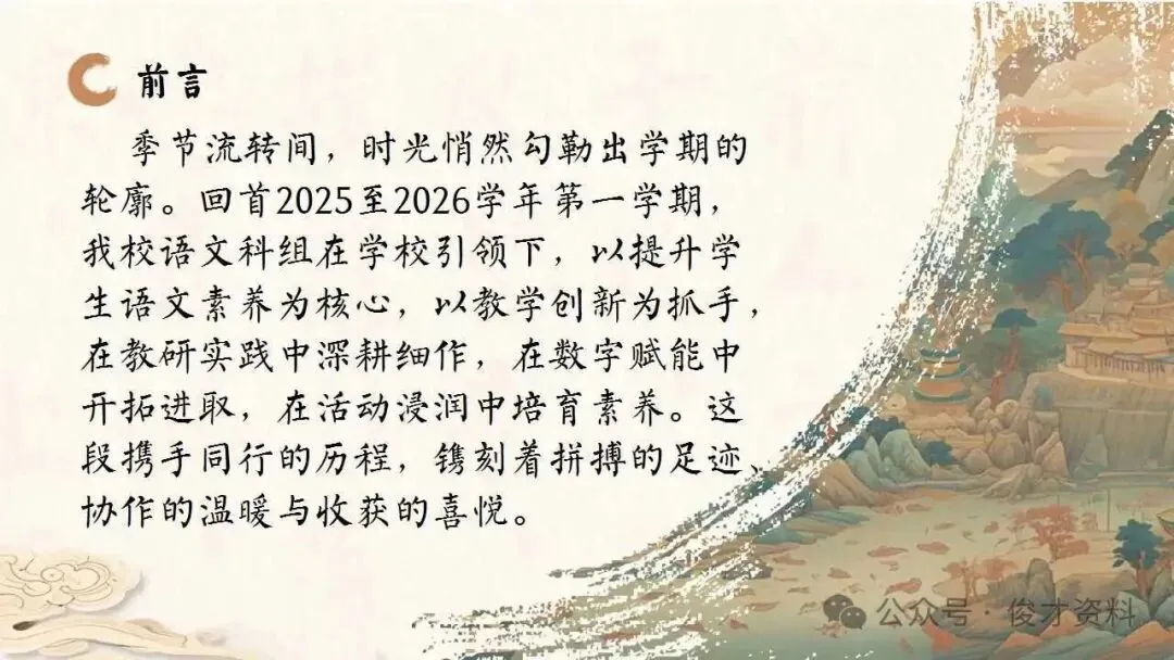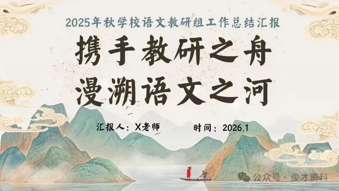 2025年秋季第一学期学校语文教研组工作总结ppt:携手教研之舟,漫溯语文之河。