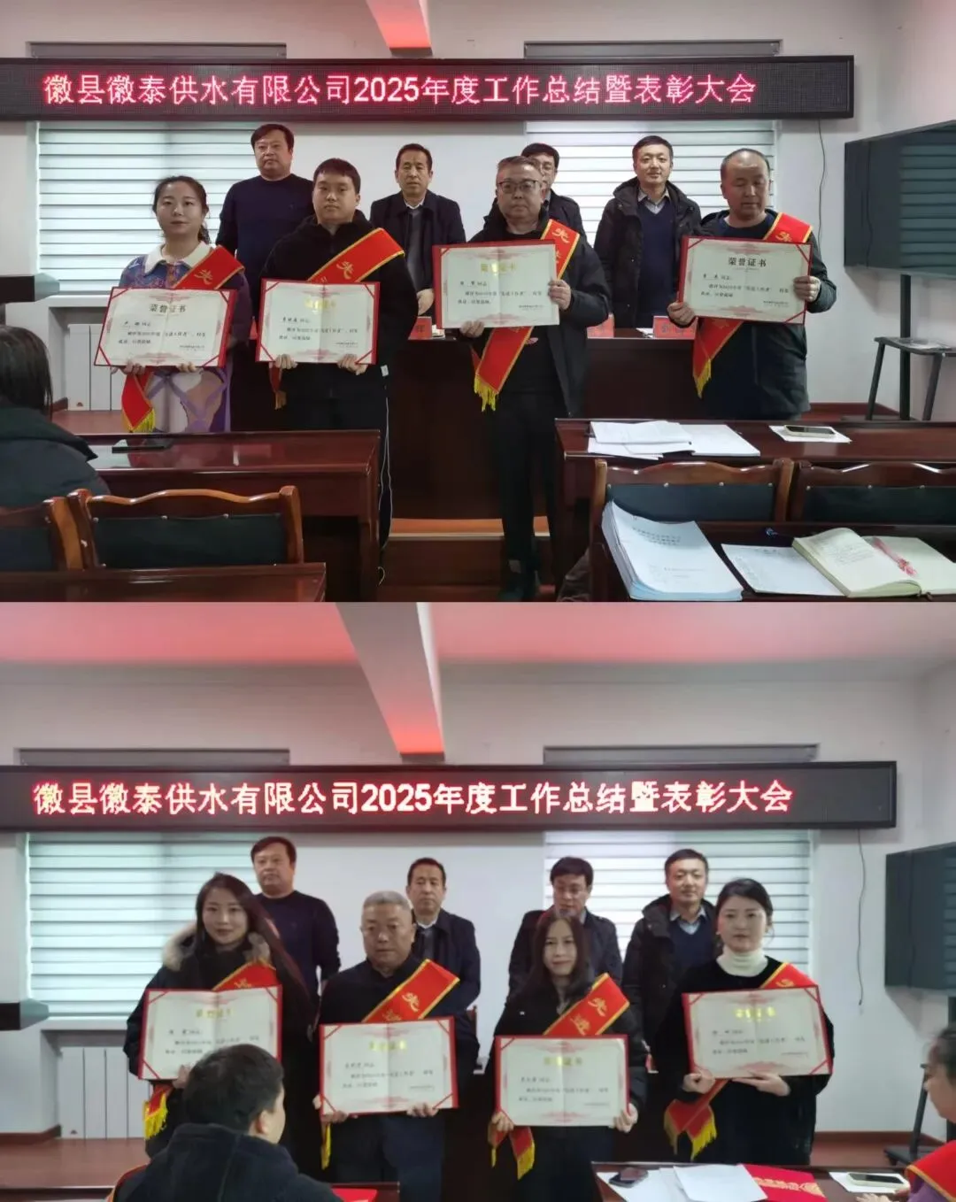 2月3日,徽县徽泰供水有限公司召开2025年度工作总结暨表彰大会。会议全面总结过去一年工作,表彰先进典型,并部署新一年任务。