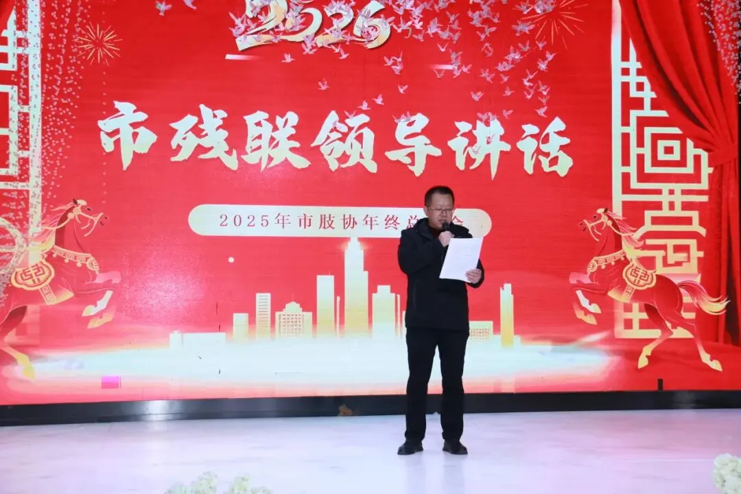 金光阳代表市残联向市、县两级肢协,向全市肢残人朋友及爱心人士致以诚挚的新年问候和良好祝福!希望各级肢协组织要坚持正确政治方向,有效履行“代表、服务、维权、监督”职能,引导广大肢残人朋友听党话、感党恩、跟党走;要发挥协会主体作用,坚持“三基”工作导向,切实发挥助残社会组织和爱心人士的特殊作用,推动县(区)肢协提质增效,丰富节点主题活动,提高基层肢残人的参与度;要助力实现人生价值,大力挖掘培养体育、文化、艺术、技能、技术等各类尖子人才,为他们搭建成功出彩的舞台;广泛链接创业就业资源,倾力帮助肢残人就业增收,携手走向共同富裕。