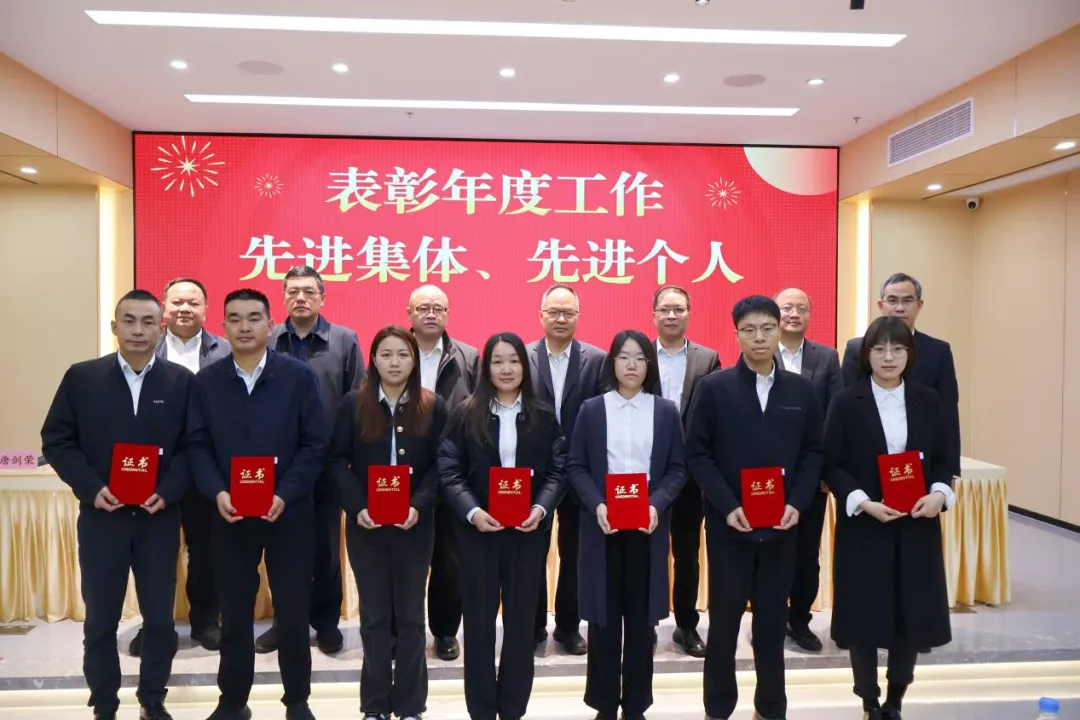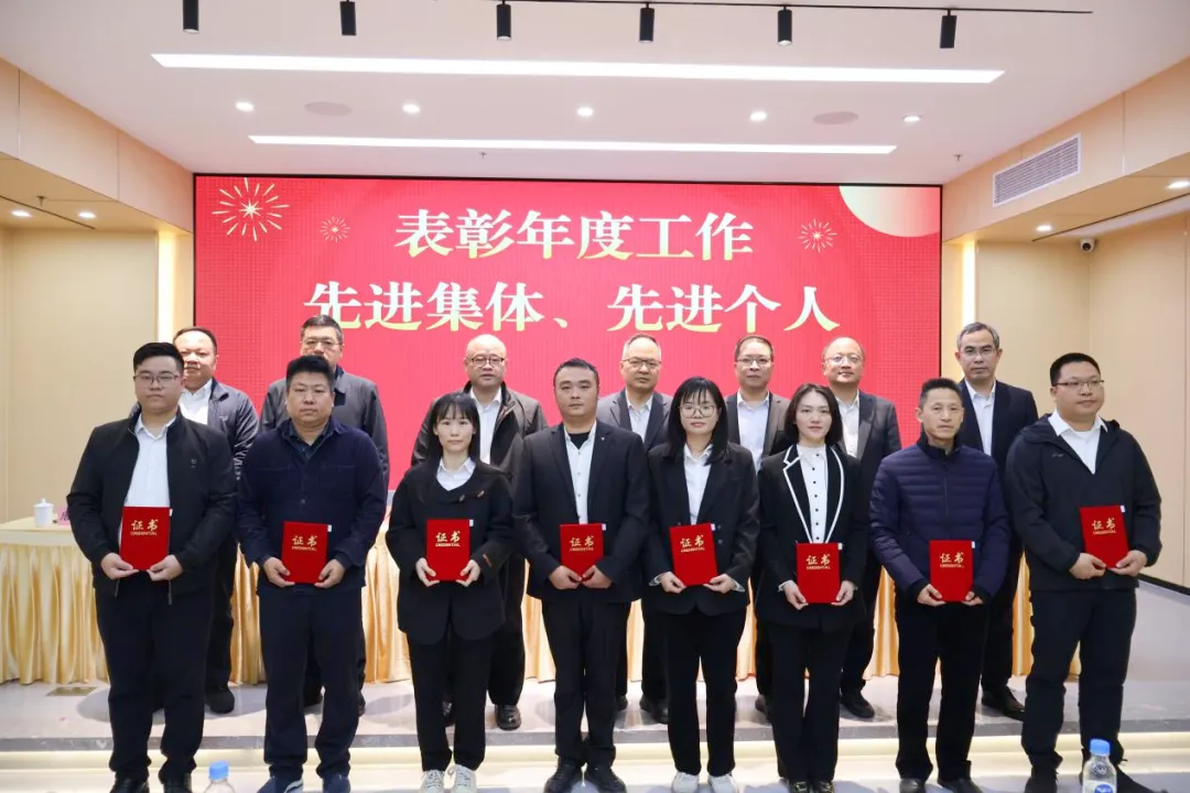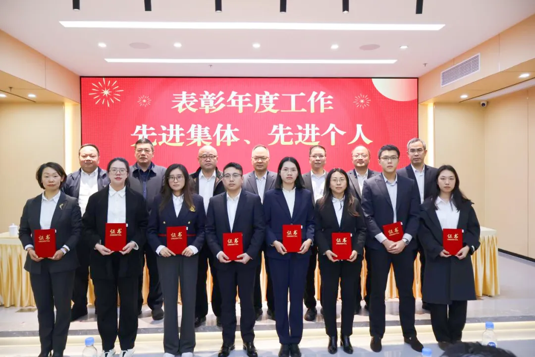 会上,集团领导对获得2025年度先进集体及先进个人等荣誉称号的部门及成员进行表彰、颁发荣誉牌匾和荣誉证书并合影留念。