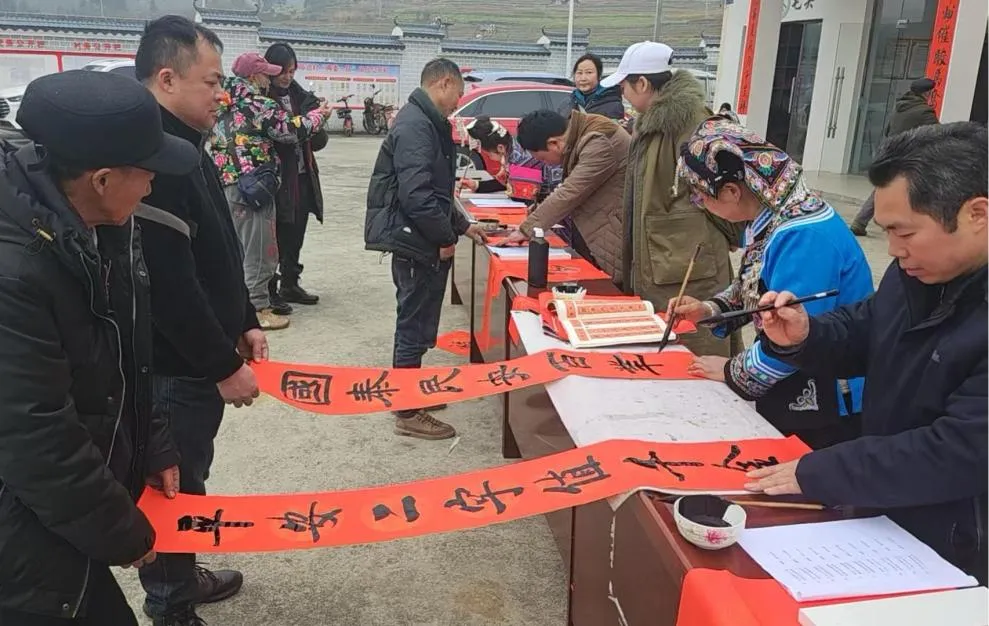 会议结束后,市书法协会老师现场挥毫泼墨,为村民书写春联200余副,“践初心为民多办实事,担使命聚力勇建新功”“春满神州催骏马奋蹄,福满华夏庆丙午呈祥”等一幅幅饱含祝福的春联,不仅传递了节日的喜悦,更凝聚了干群同心促振兴的精气神,让整场会议在温馨祥和的氛围中圆满落幕。