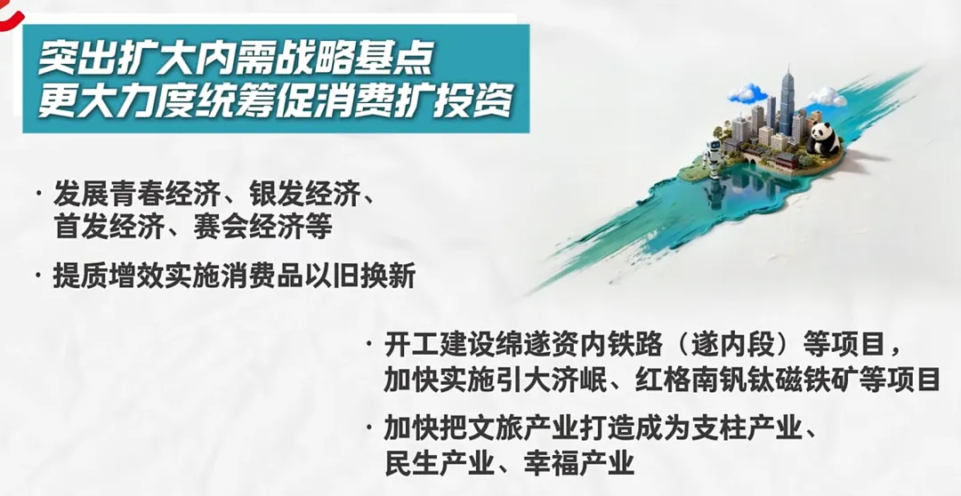 1、突出扩大内需战略基点,更大力度统筹促消费扩投资。
