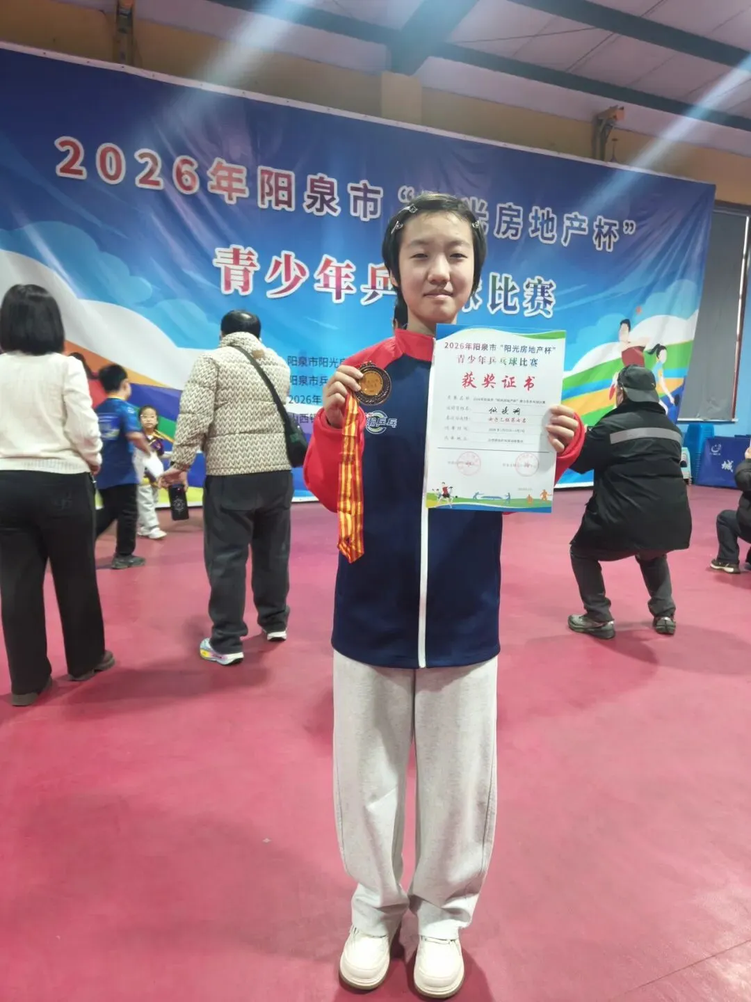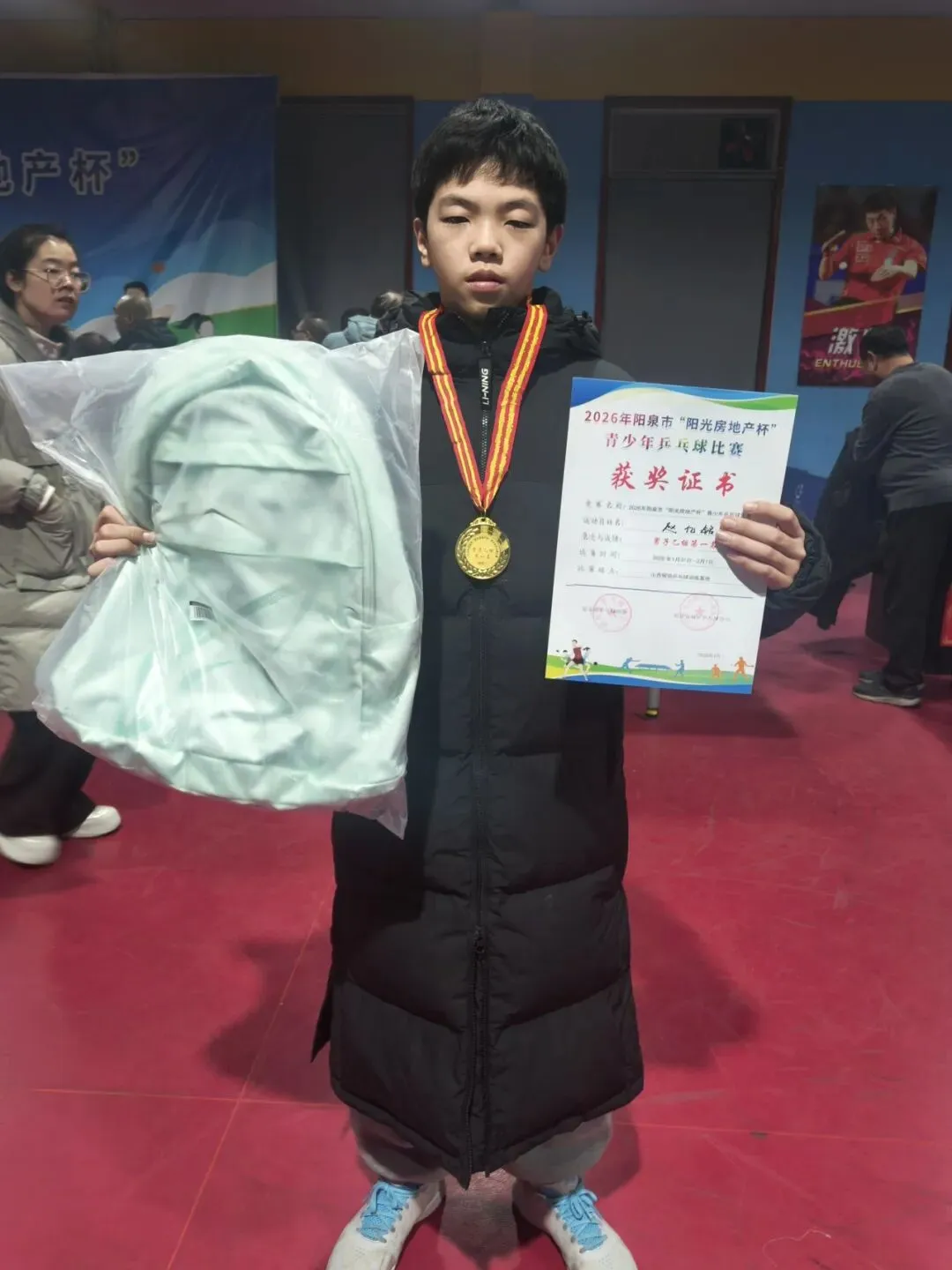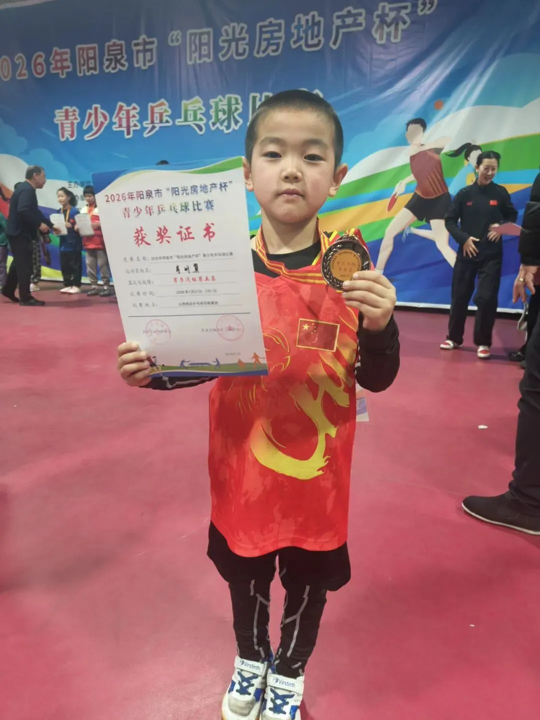 ○花塔小学参赛队5名队员中4名来自浩瀚乒乓,团体荣获第五名; ○晋源区实验小学参赛队5名队员中3名来自浩瀚乒乓,团体荣获第六名; ○晋泽中学小学部参赛队5名队员全部为浩瀚乒乓学员,团体荣获第八名。 3.阳泉乒协青少年乒乓球公开赛(2026年1月31日):机构派出8名小将征战多个组别赛场,学员们顶住压力、敢打敢拼,斩获多项个人荣誉: