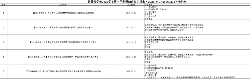 工作成效的精准呈现、问题短板的系统梳理,从来不是靠期末“冥思苦想”,而是源于日常的点滴积累、常态复盘。各部门要建立常态化积累机制,做好周小结、月复盘的规范记录,搭建专属工作台账,及时补充工作内容、完善相关数据——正如党政办整理发文统计表那般(见下表),每完成一项工作、每下发一份文件,都第一时间更新归档,做到底数清、情况明、数据准。