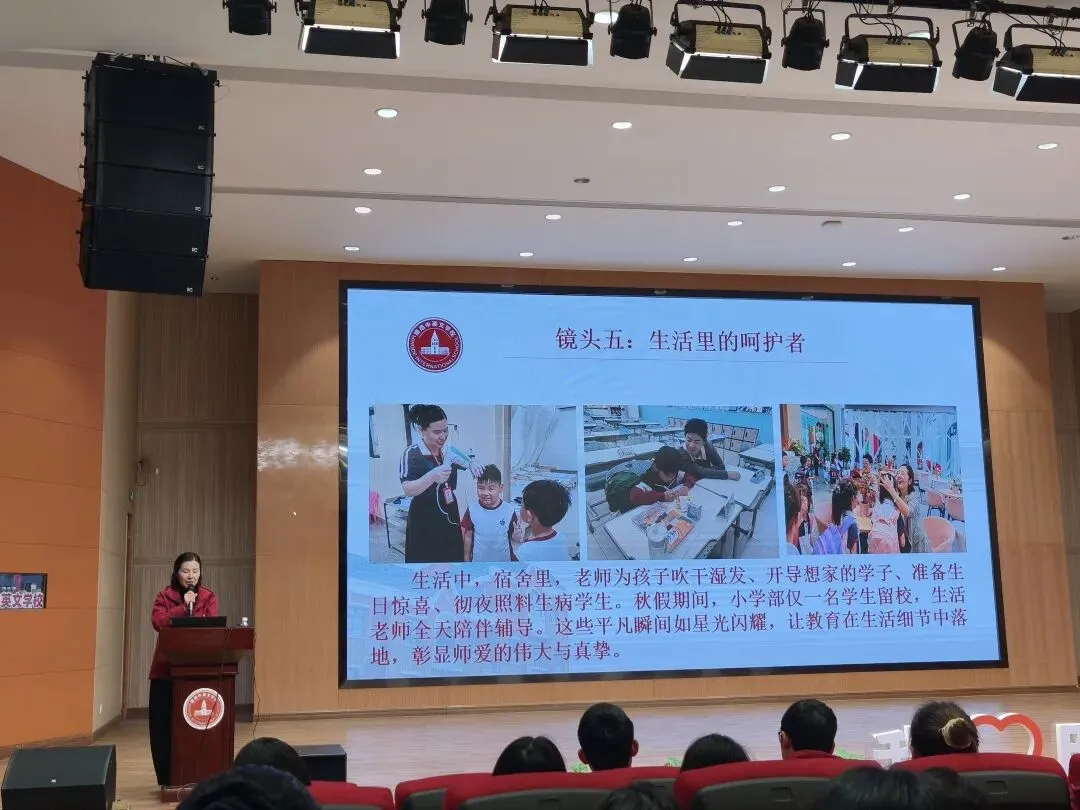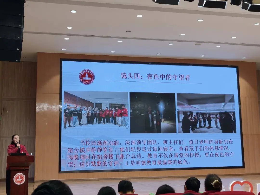 镜头记录下了明德校园里老师们的点点滴滴。他们耐心辅导学生,每一个专注讲解的瞬间都满含着对学生的关爱;悉心照顾学生,从生活到学习,无微不至。夜幕降临,值日值班的老师坚守岗位;晚会之上,老师们也展现出多才多艺的一面。他们用敬业诠释着教育的责任,用爱心温暖着每一个学生,老师们团结一致,为了学生的成长全力以赴。