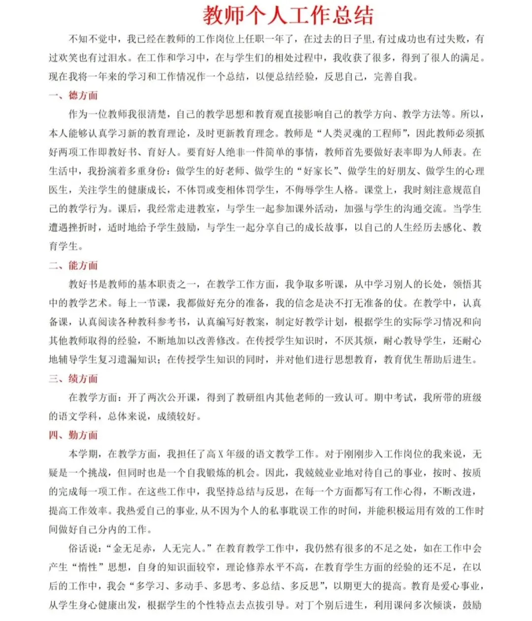 你好呀,今天分享的是教师个人工作总结。